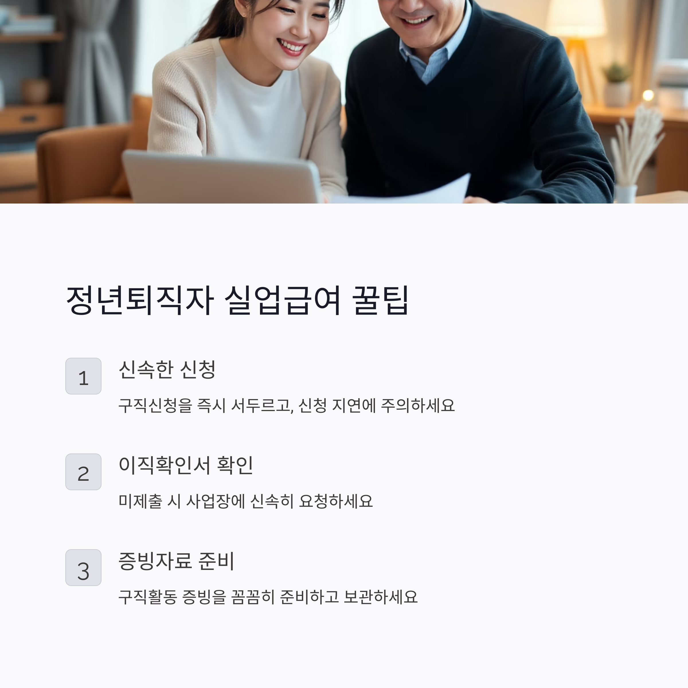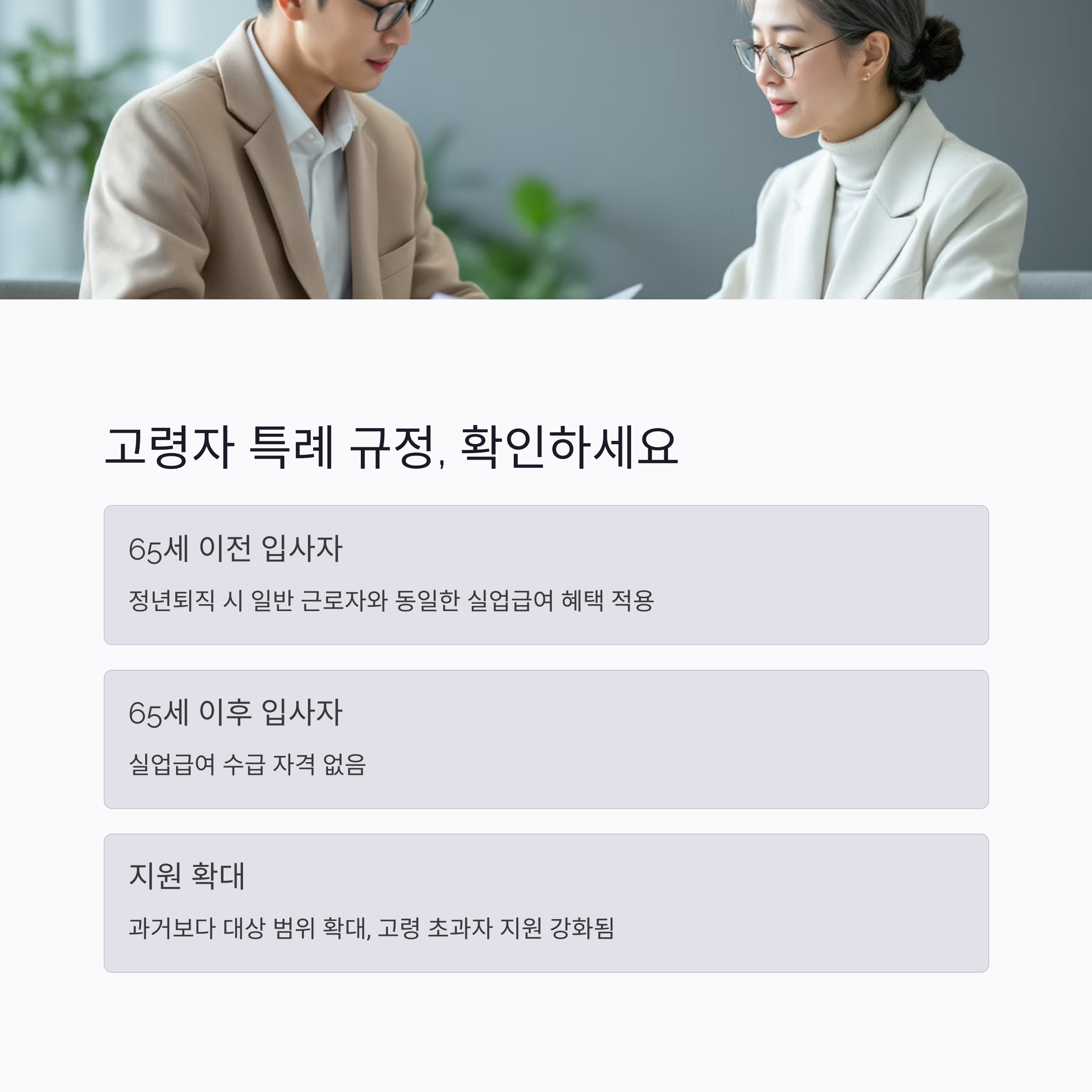 - 다만 고령자 특례로 인해 구직활동이 간소화될 수 있습니다