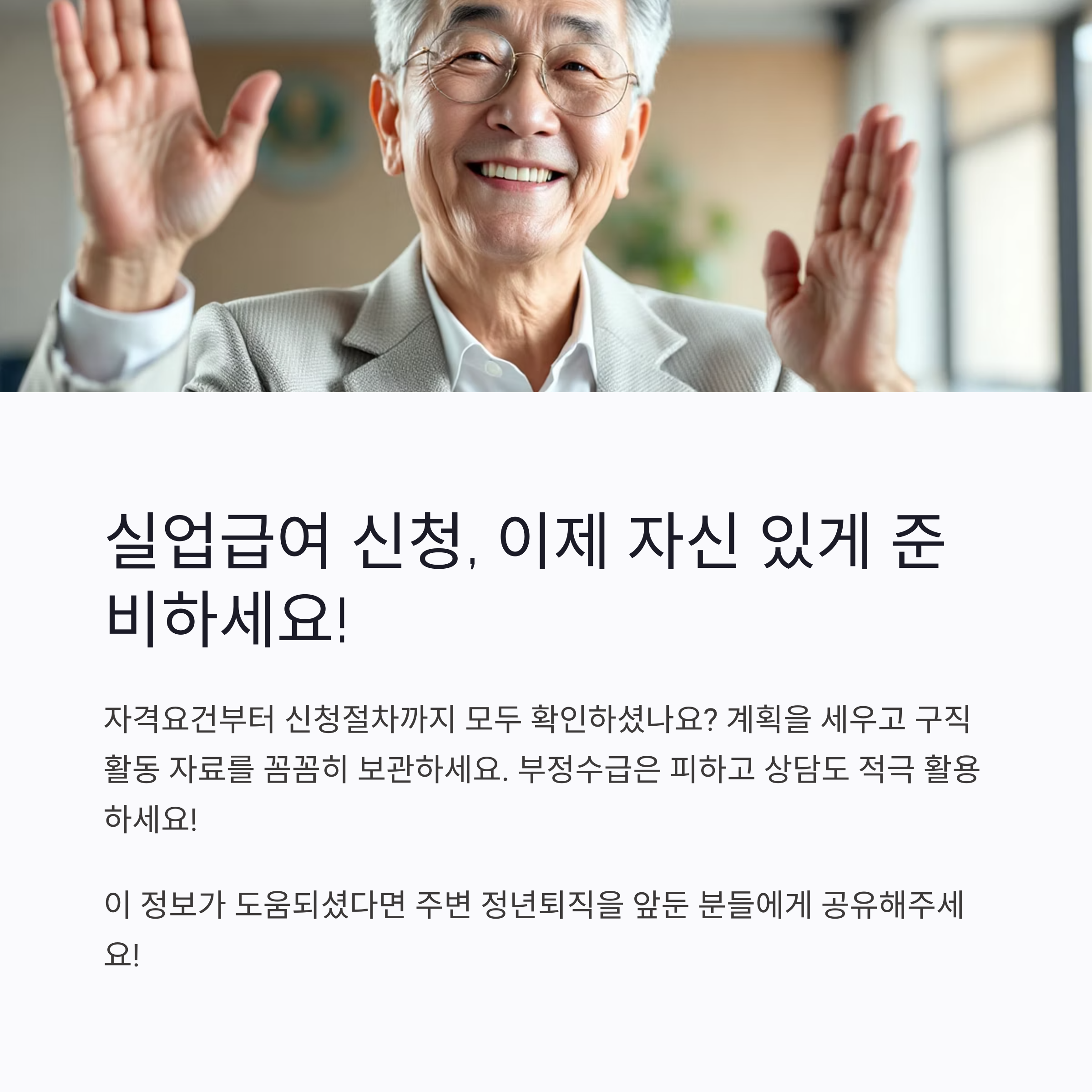 마지막으로, 정년퇴직 후 실업급여 수급을 위한 요약 정리입니다:
