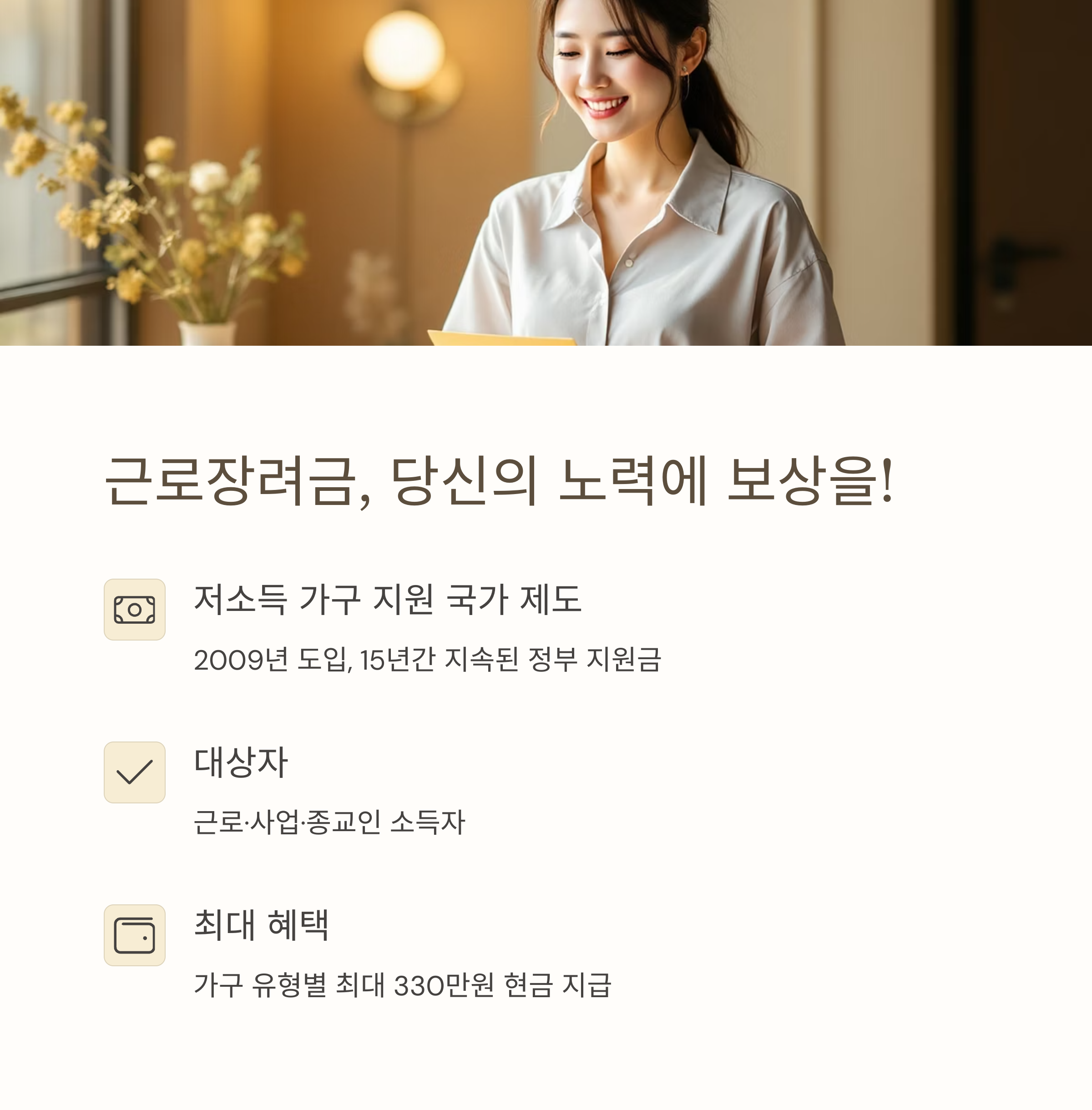 "이 네 가지를 잘 챙기면 근로장려금 신청은 성공적으로 마무리됩니다 🎯"