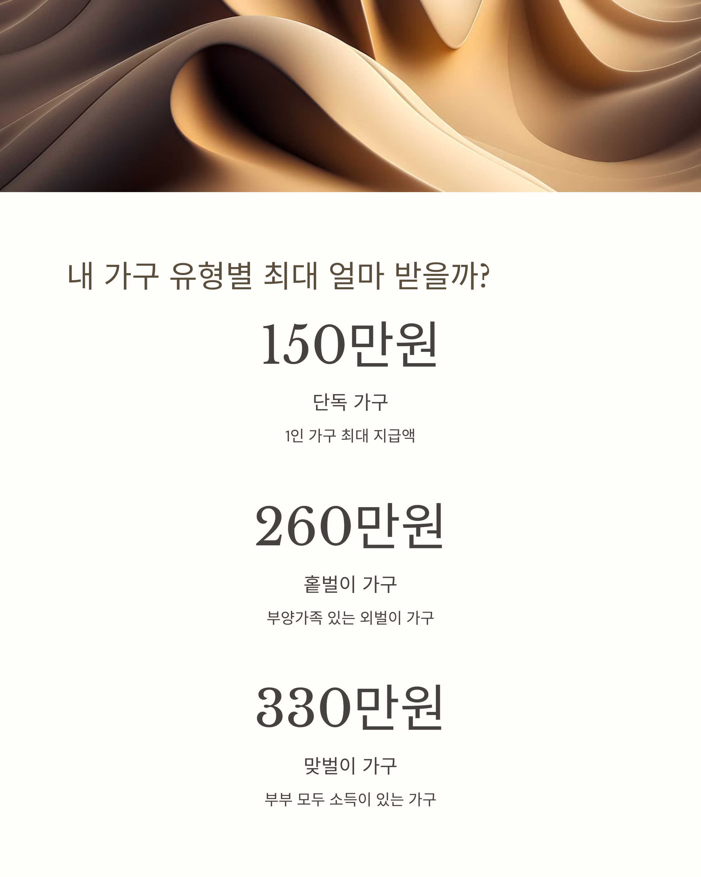 2025년 기준, 가구 유형별 최대 지급 금액은 아래와 같습니다.