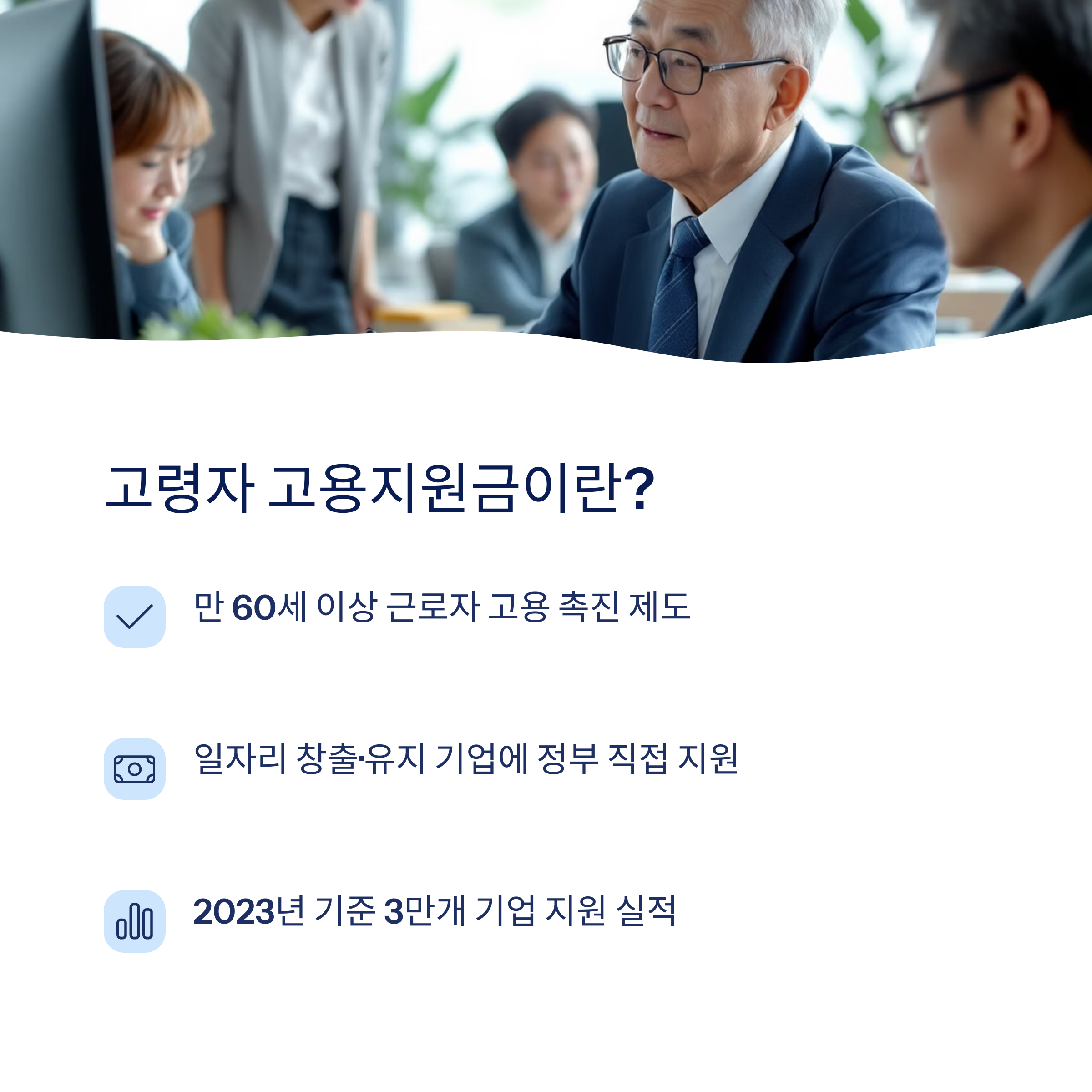 고령자 고용지원금은 만 60세 이상 고령 근로자 고용 확대를 유도하기 위한 정책적 수단입니다.