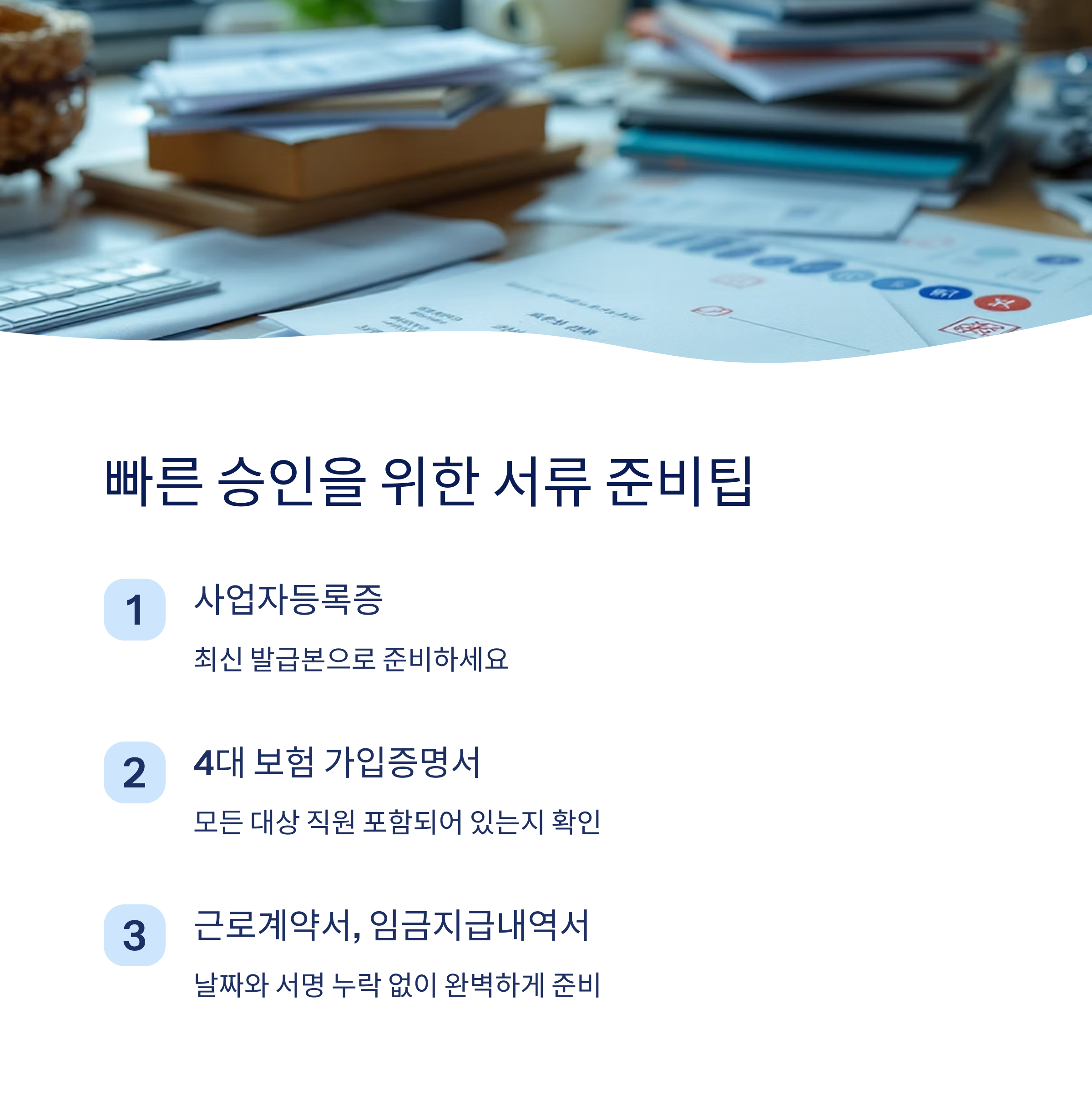 보험 가입 여부, 근속 기간, 인건비 지급 증빙은 필수입니다.