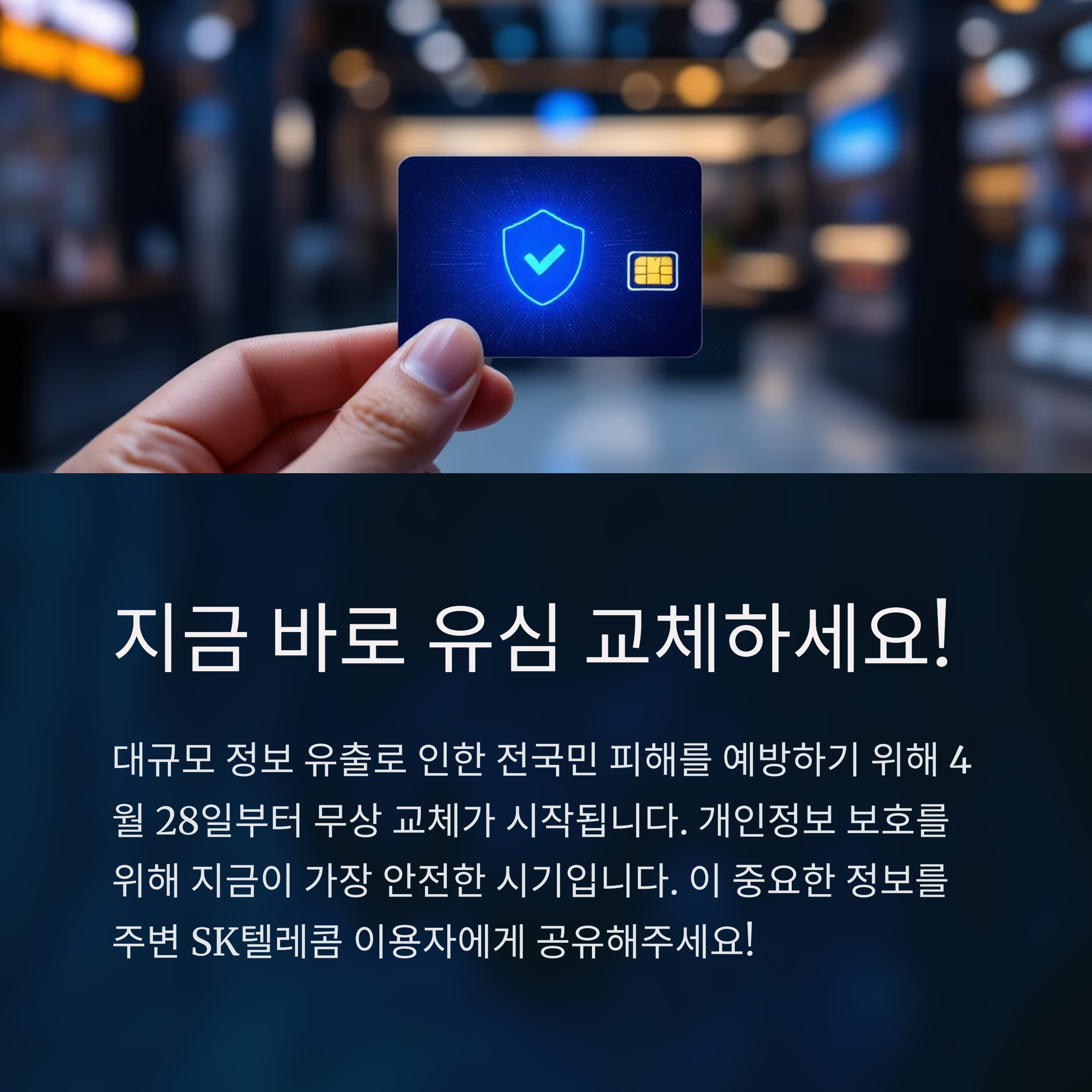 전국 고객 대상 무상 유심 교체 실시, 지금 내 정보도 위험할 수 있습니다!