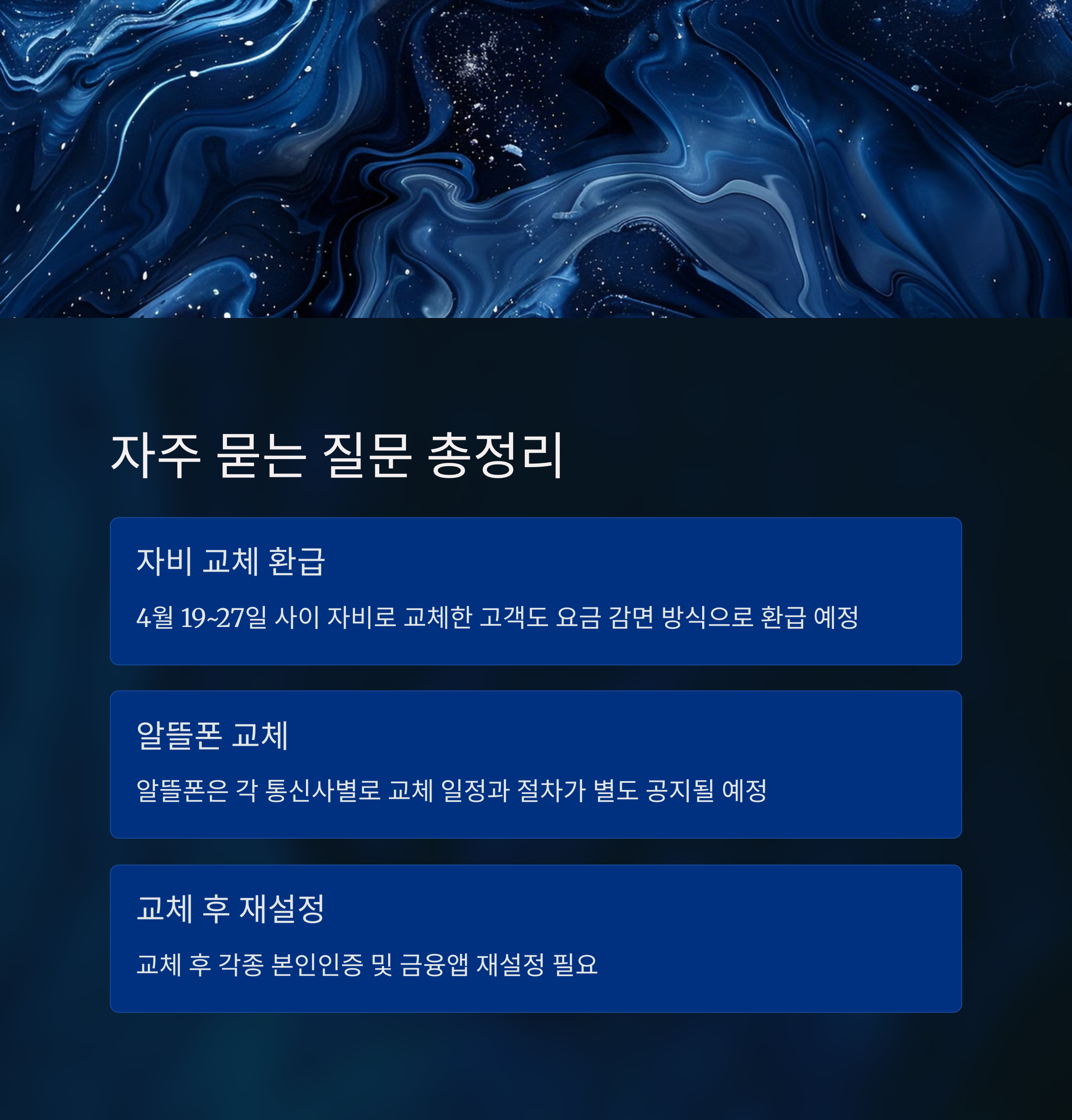 이에 따라 고객 보호와 2차 피해 예방을 위한 조치로 무상 유심 교체가 시행됩니다.