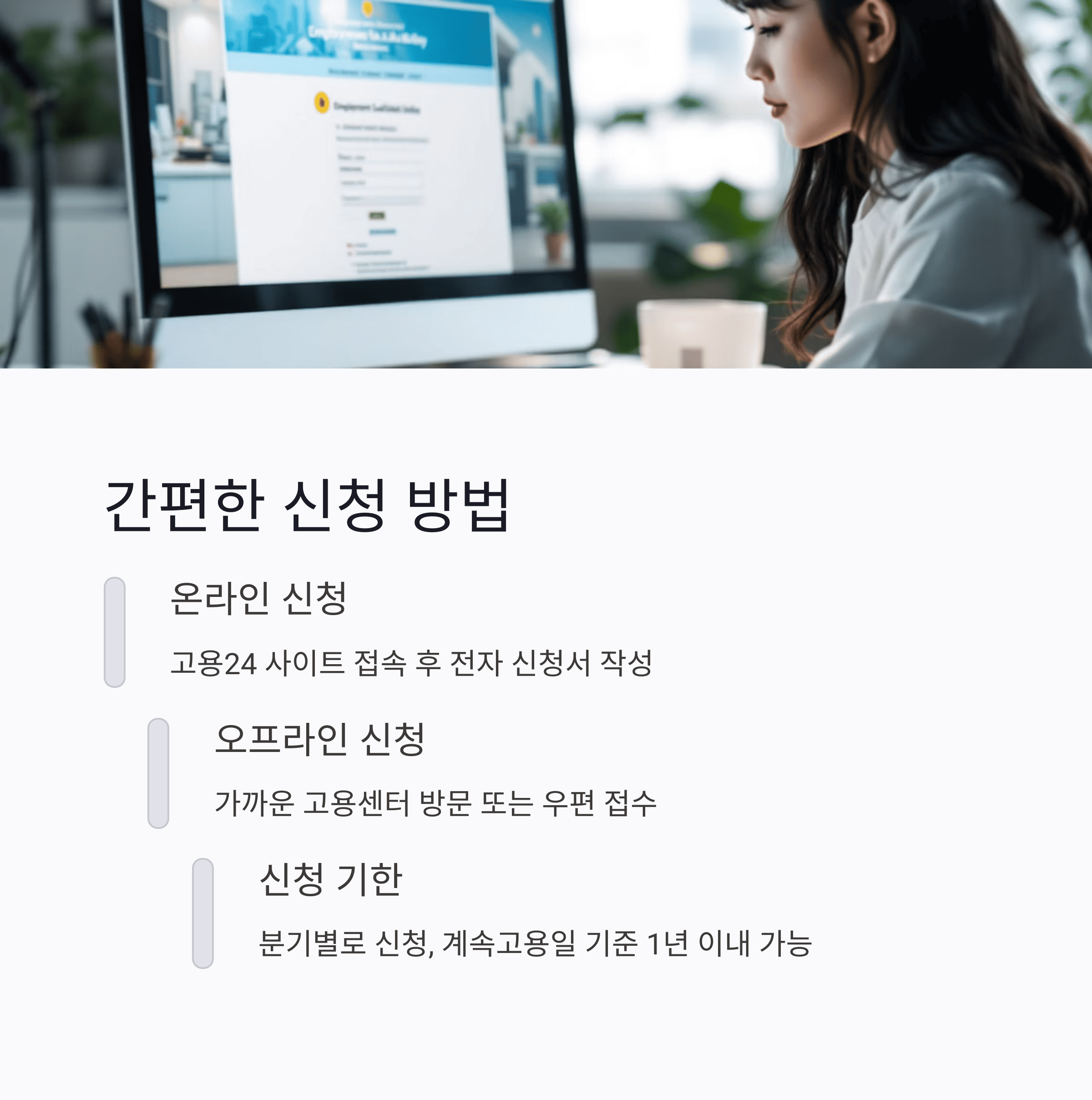 - 고용24(www.work24.go.kr) 사이트를 통해 신청 가능합니다.