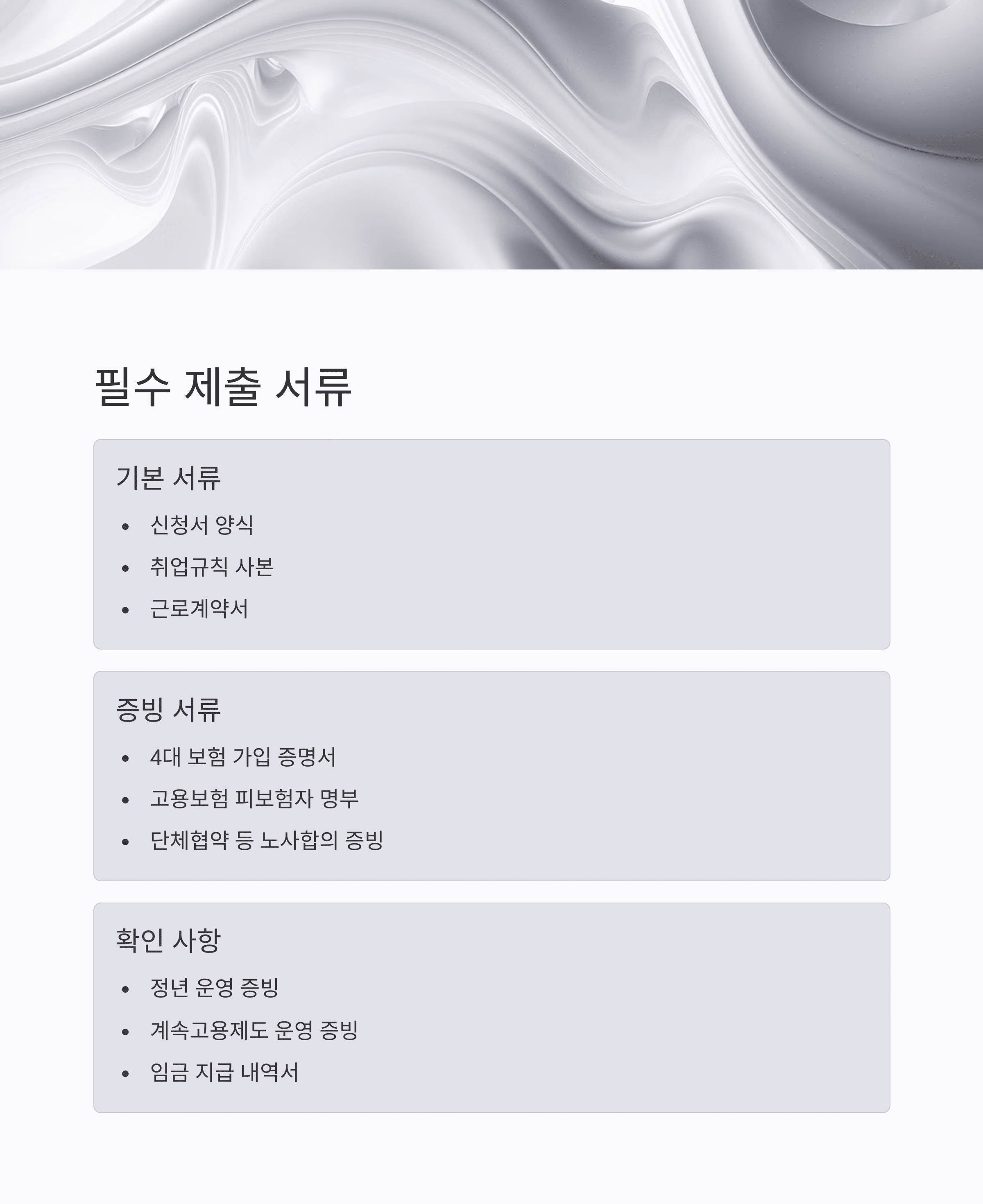 - 취업규칙 사본 또는 단체협약 사본
