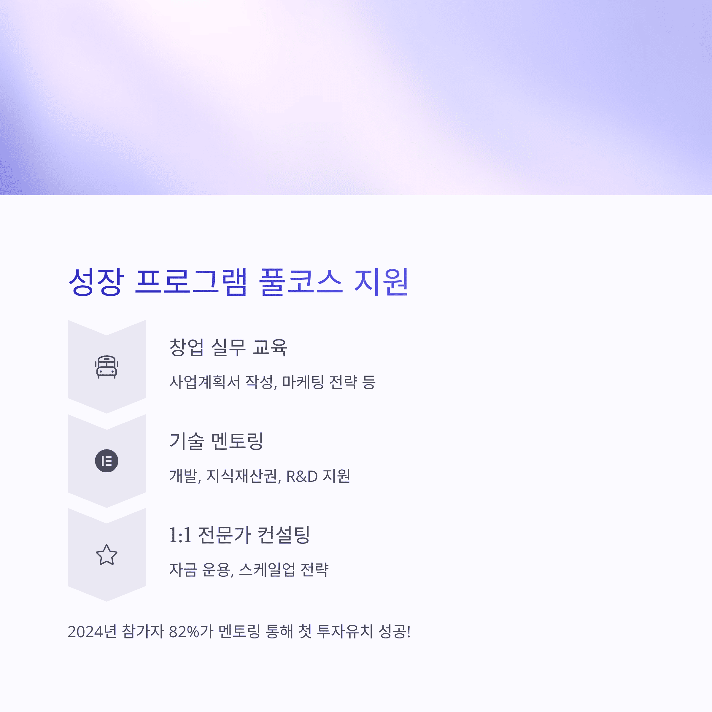 지원사업 참가자는 다음과 같은 맞춤형 성장 프로그램을 받을 수 있습니다.