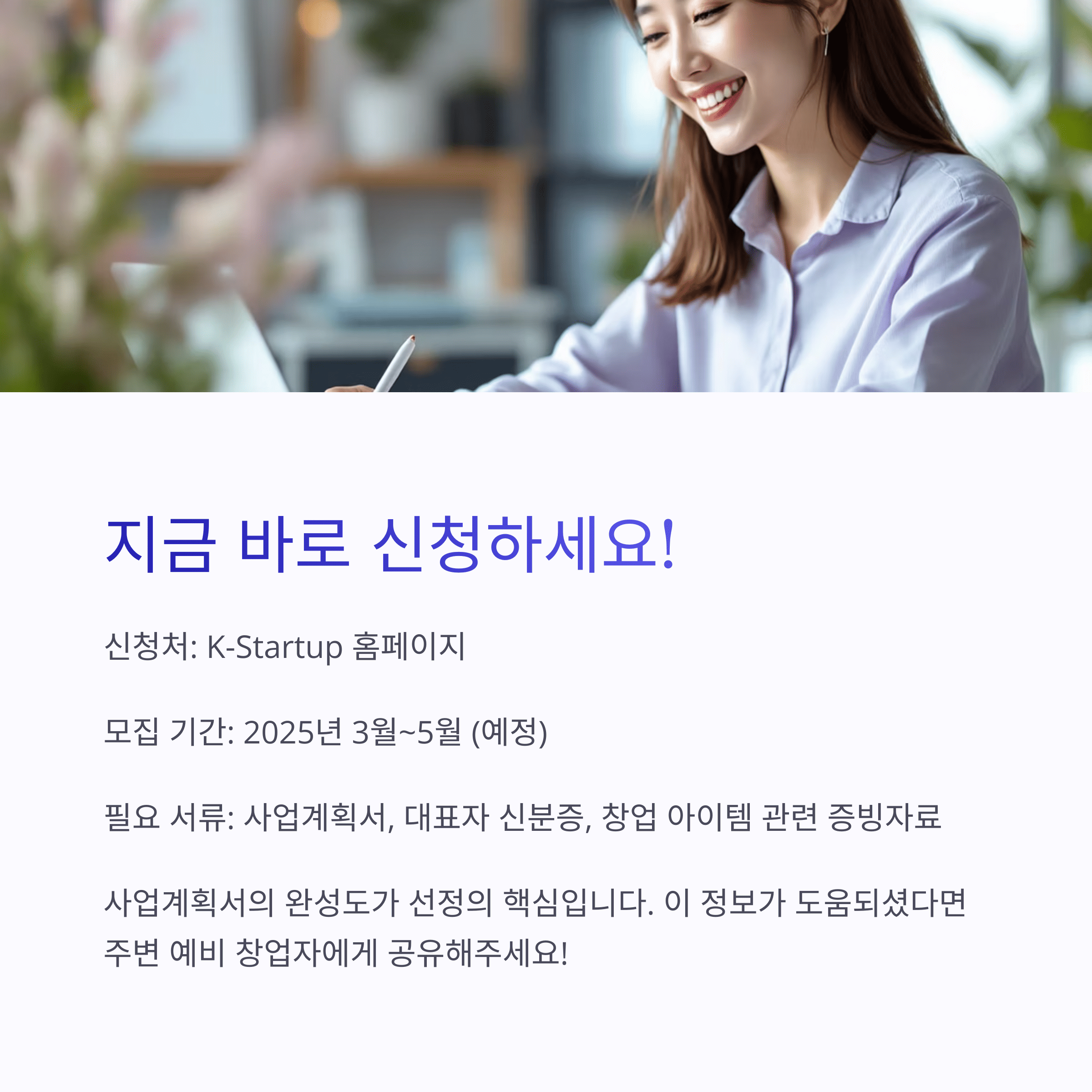 지금 시작하면 빠른 심사와 선정 확률 상승 혜택까지 기대할 수 있습니다!