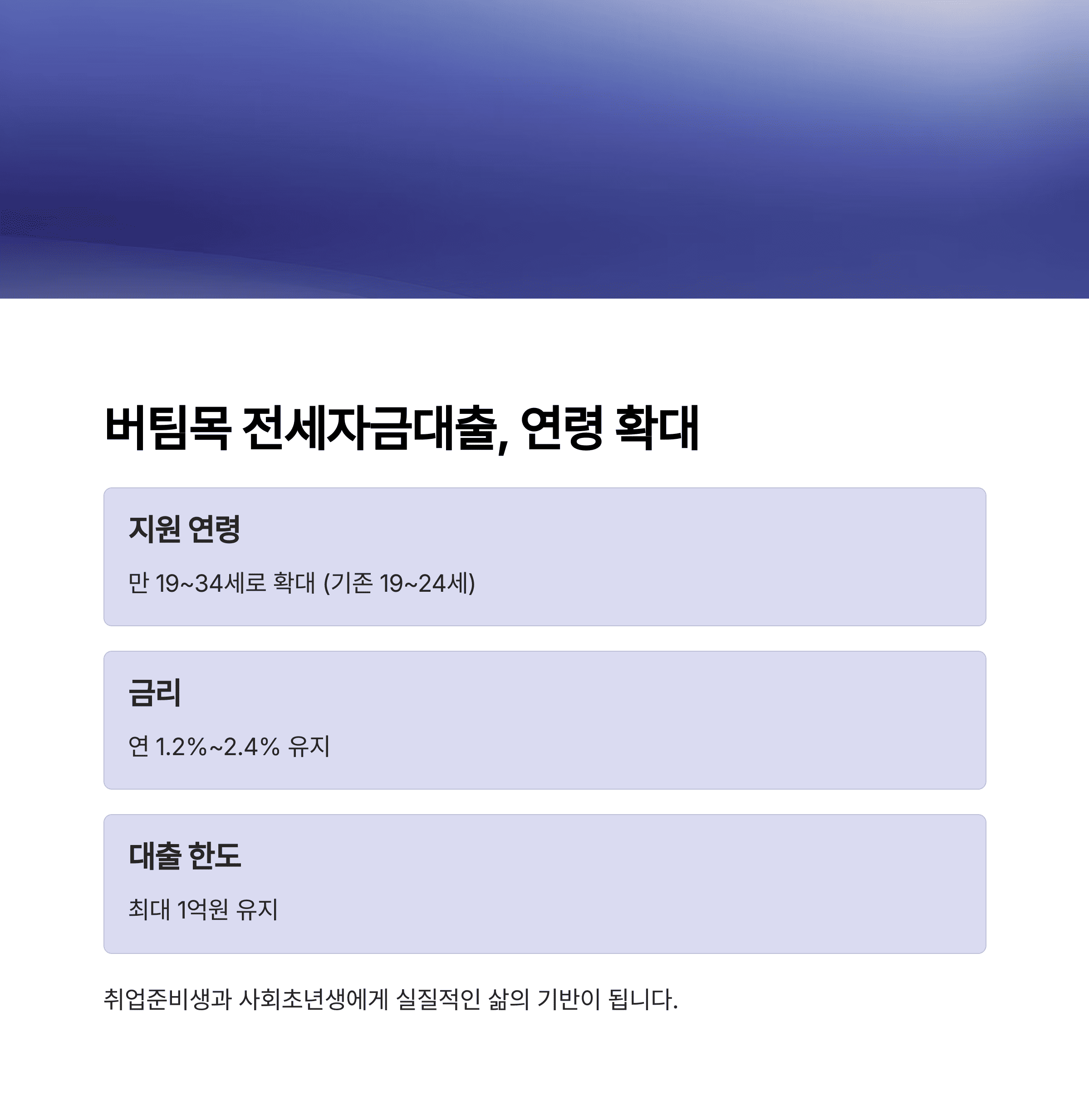 2025년에는 버팀목 전세자금대출 지원 연령이 상향됩니다.