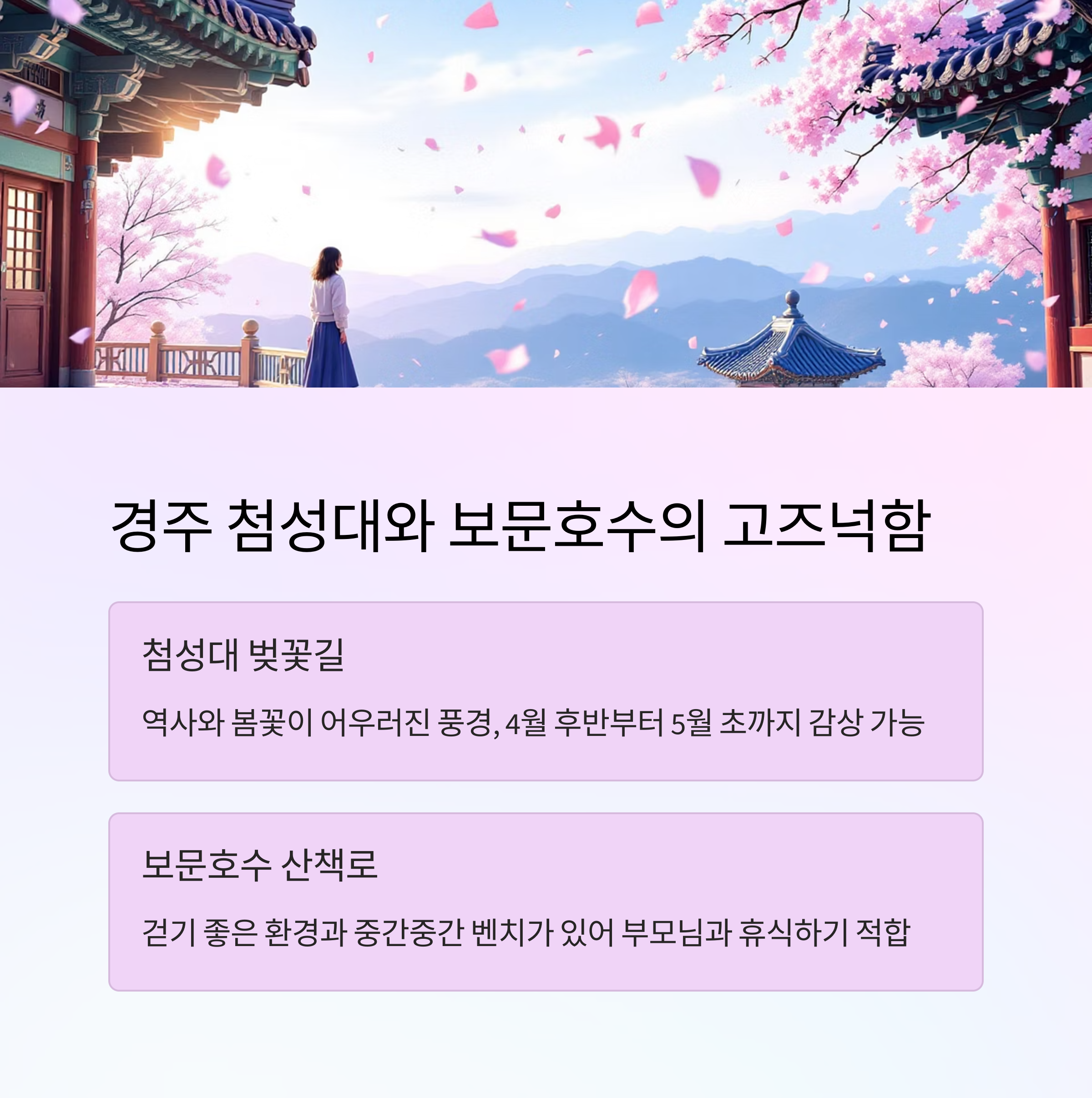 경주는 역사와 봄꽃이 어우러진 도시입니다.
