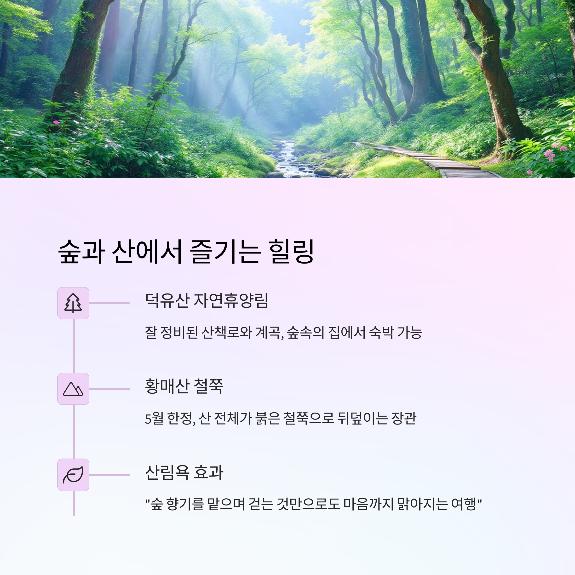 "숲 향기를 맡으며 걷는 것만으로도
