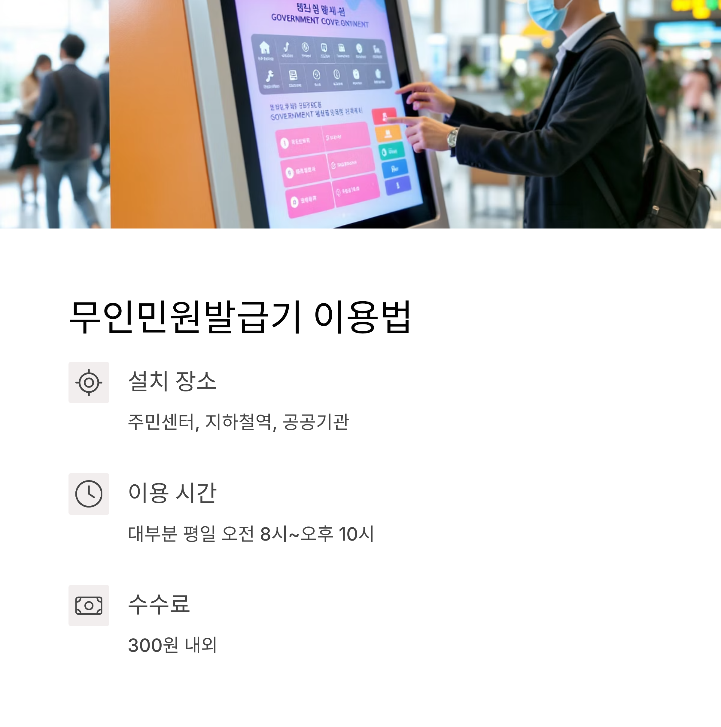 - 설치 장소: 전국 지자체 주민센터, 지하철역, 공공기관 등