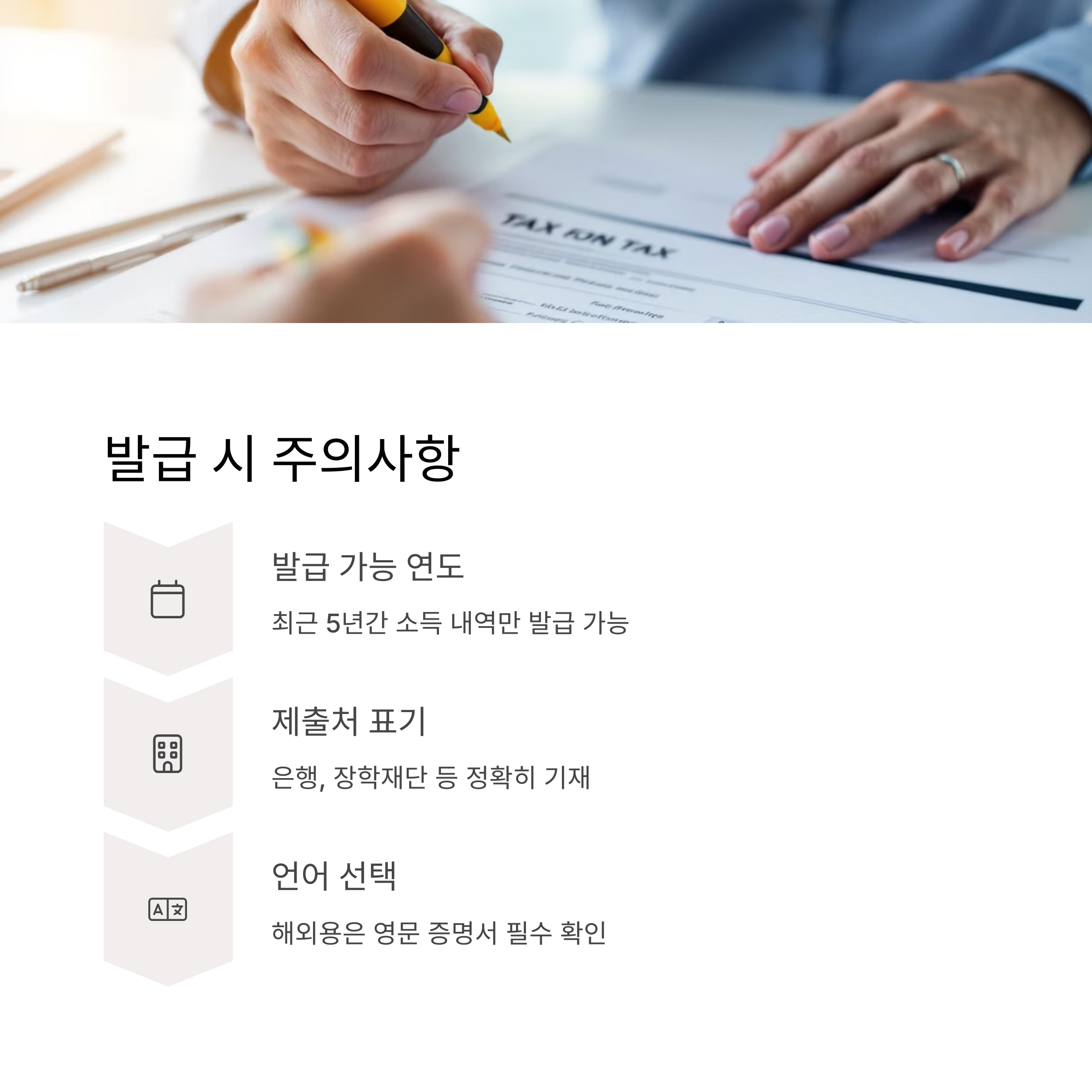 6. 발급 가능한 연도와 제출처 표기 주의사항