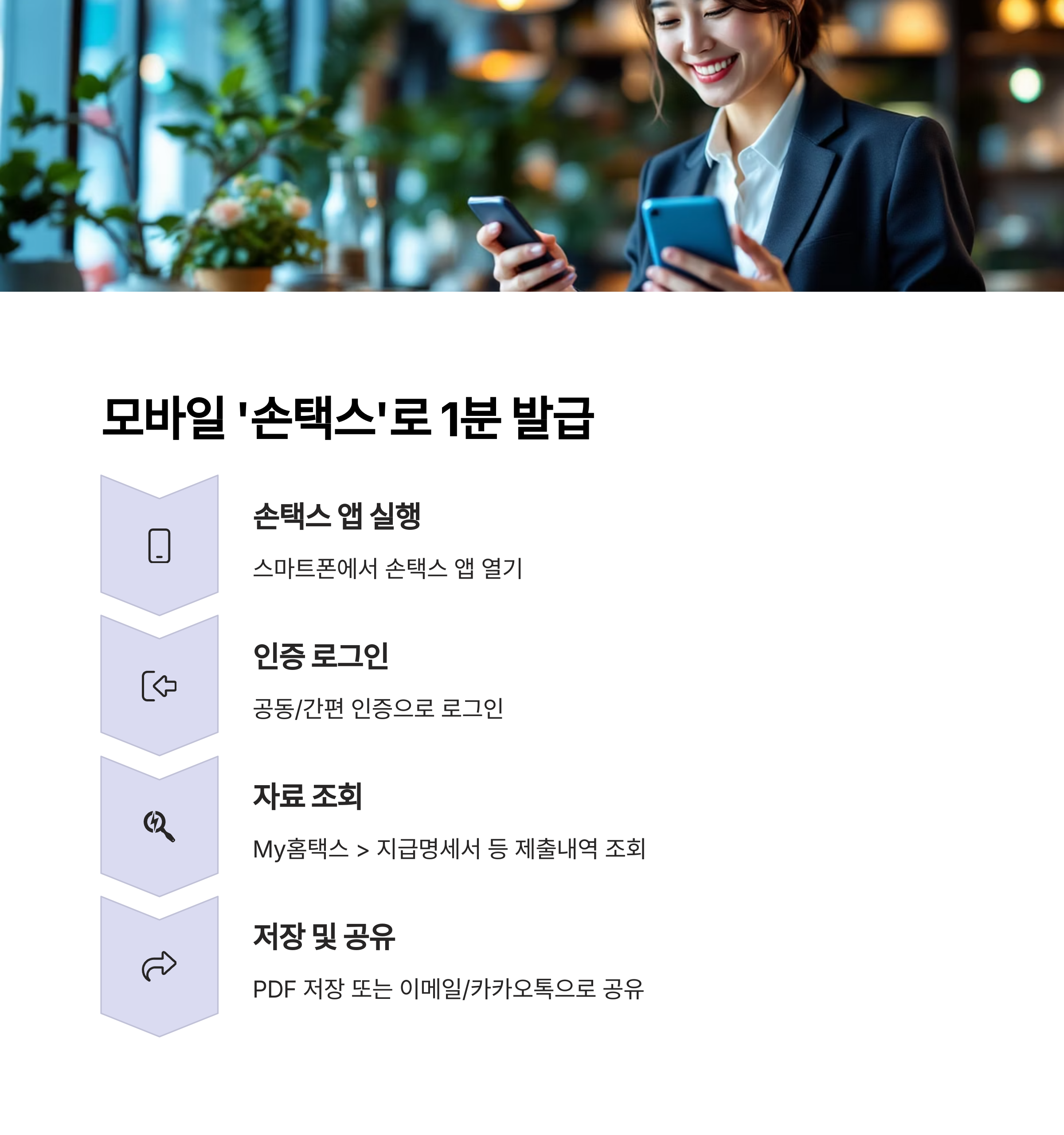 모바일에서도 1분 내 발급이 완료되며, 다음 단계를 따라 주세요.