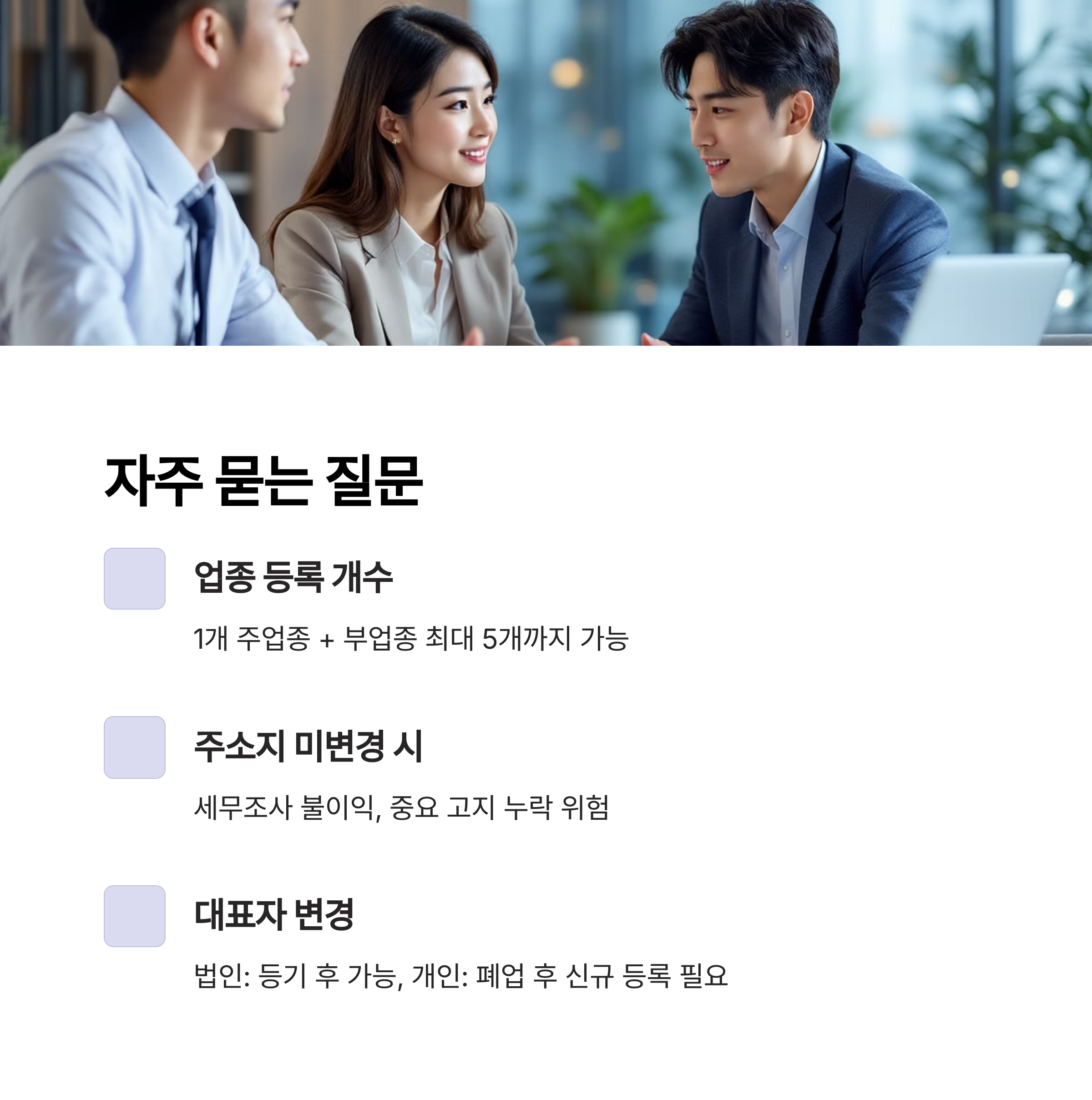 핵심 요약: 정보 변경 후에는 반드시 관련 기관과 거래처에 최신 정보를 공유해야