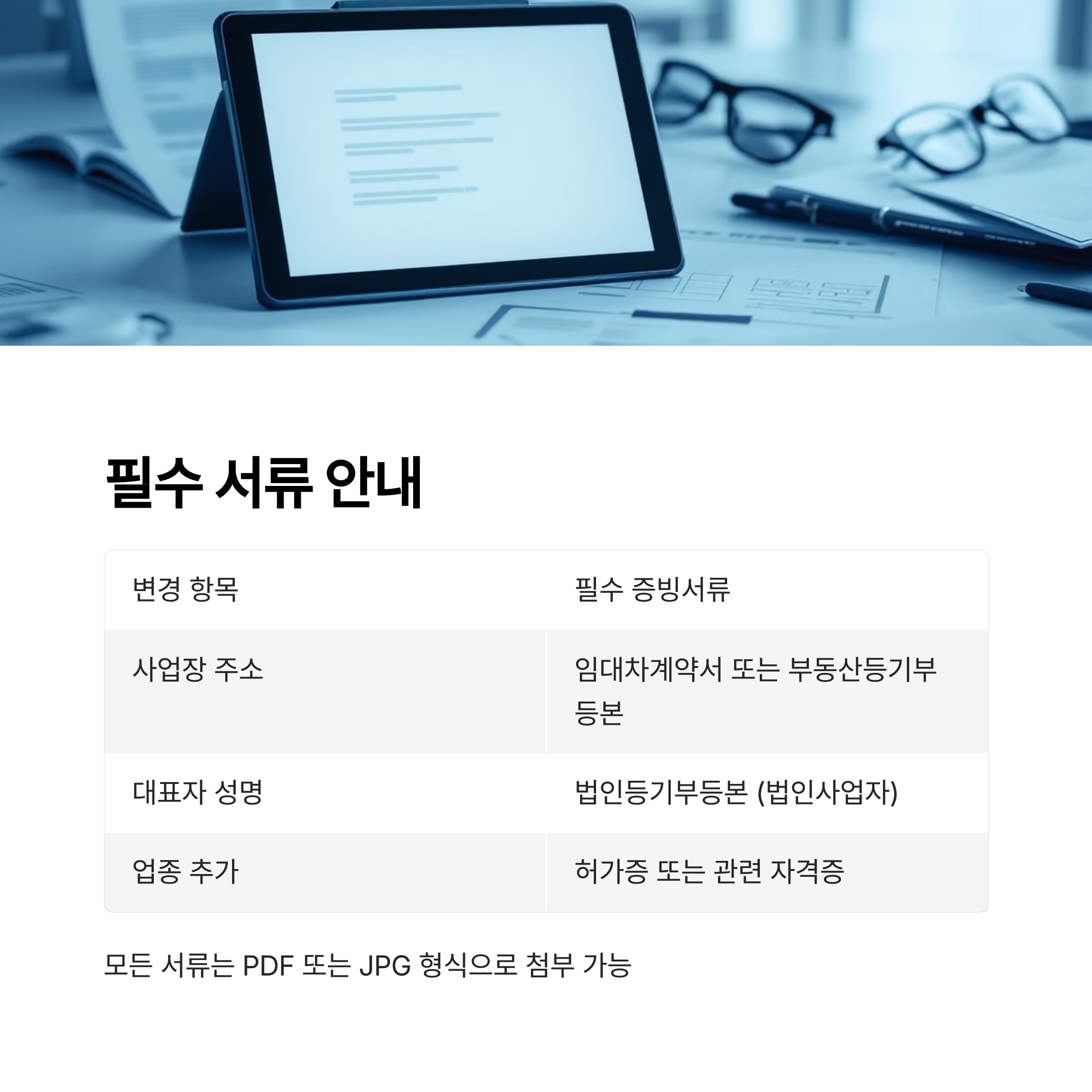 | 업종 추가 | 업종에 따라 허가증 또는 관련 자격증 |