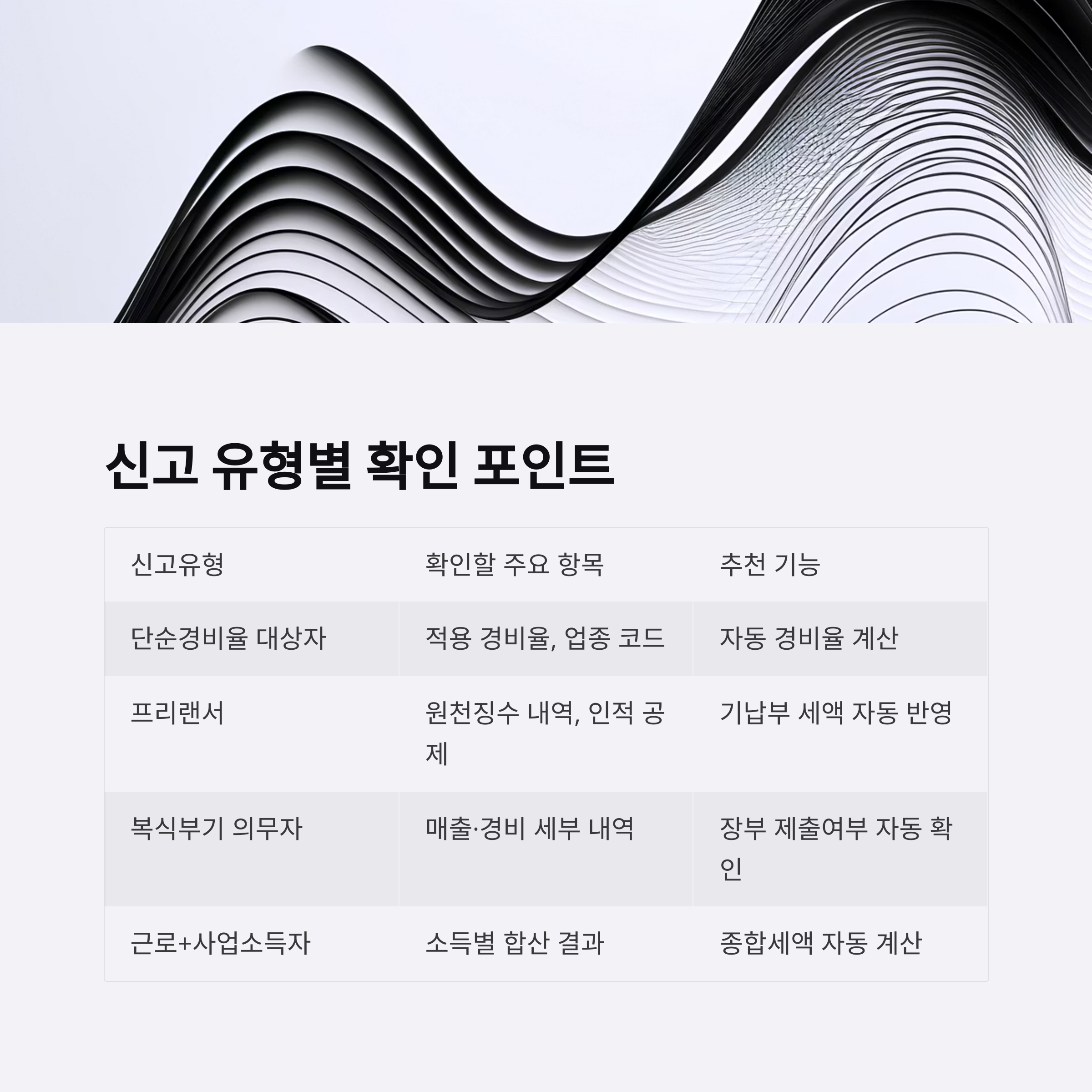 | 복식부기 의무자 | 매출·경비 세부 내역 | 장부 제출여부 자동 확인 |