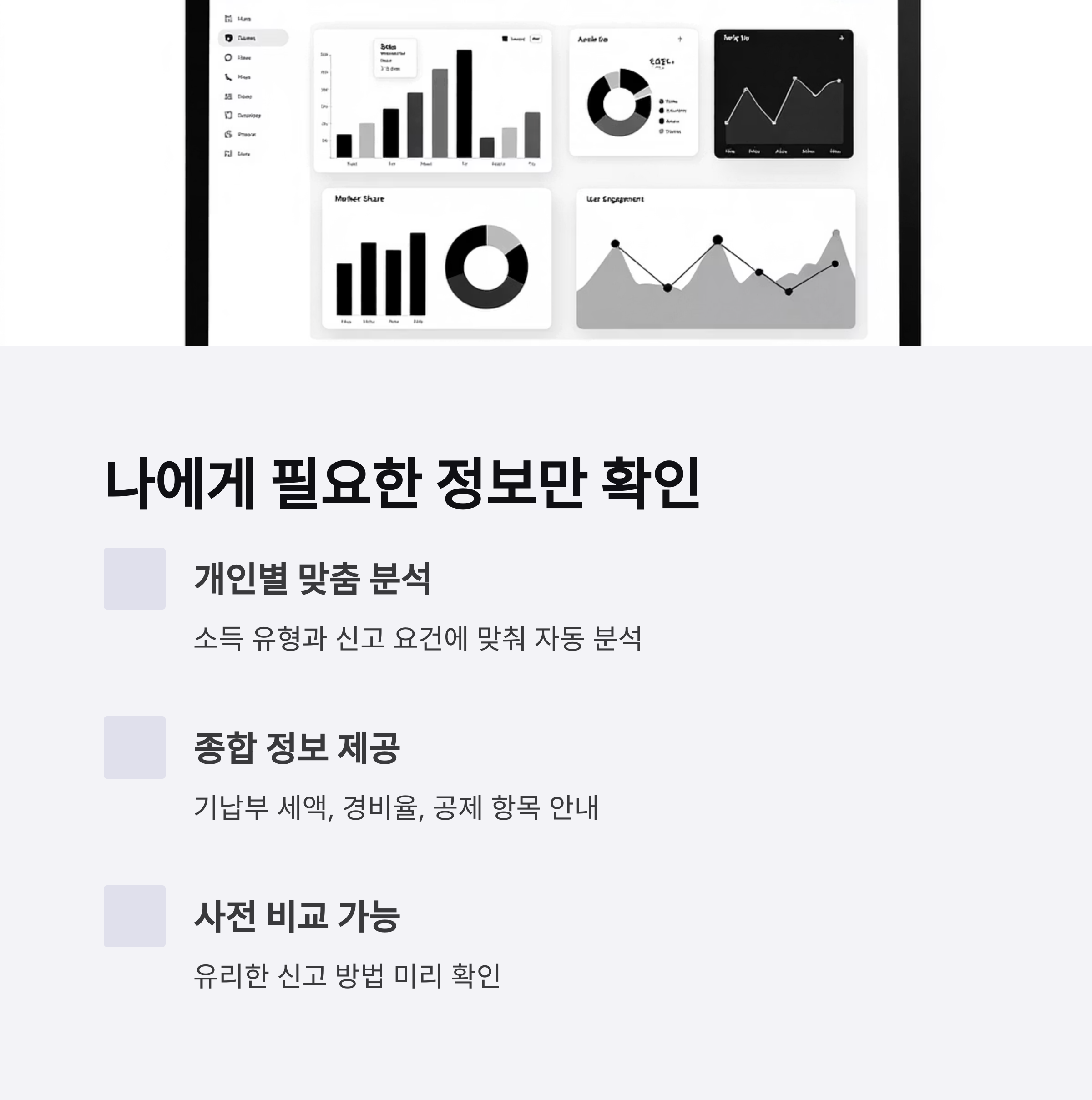 홈택스 신고도움 서비스는 개인별 소득 유형과 신고 요건에 맞춰 자료를 자동 분석해 제공합니다.