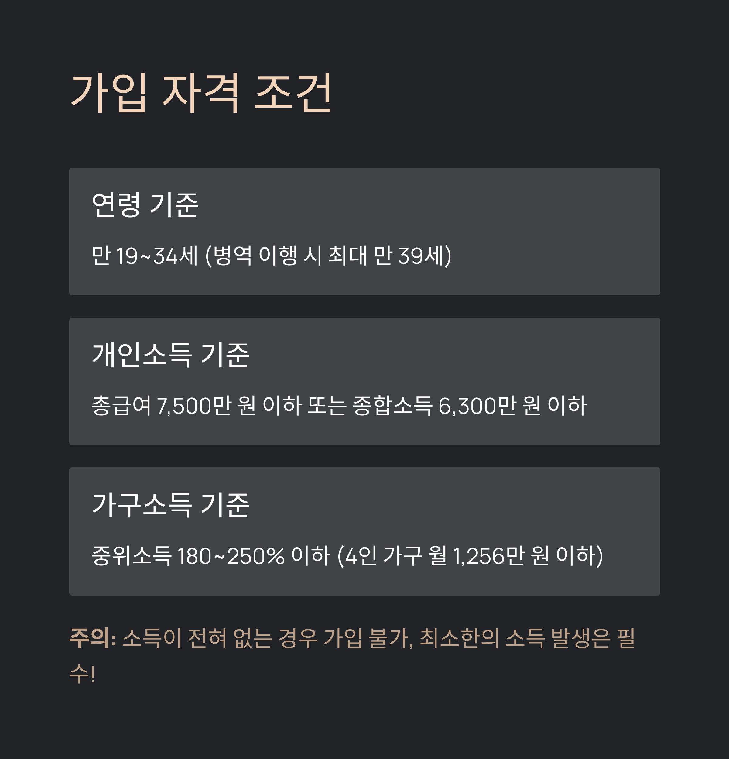 | 연령 | 만 19~34세(병역 이행 시 최대 만 39세까지) |