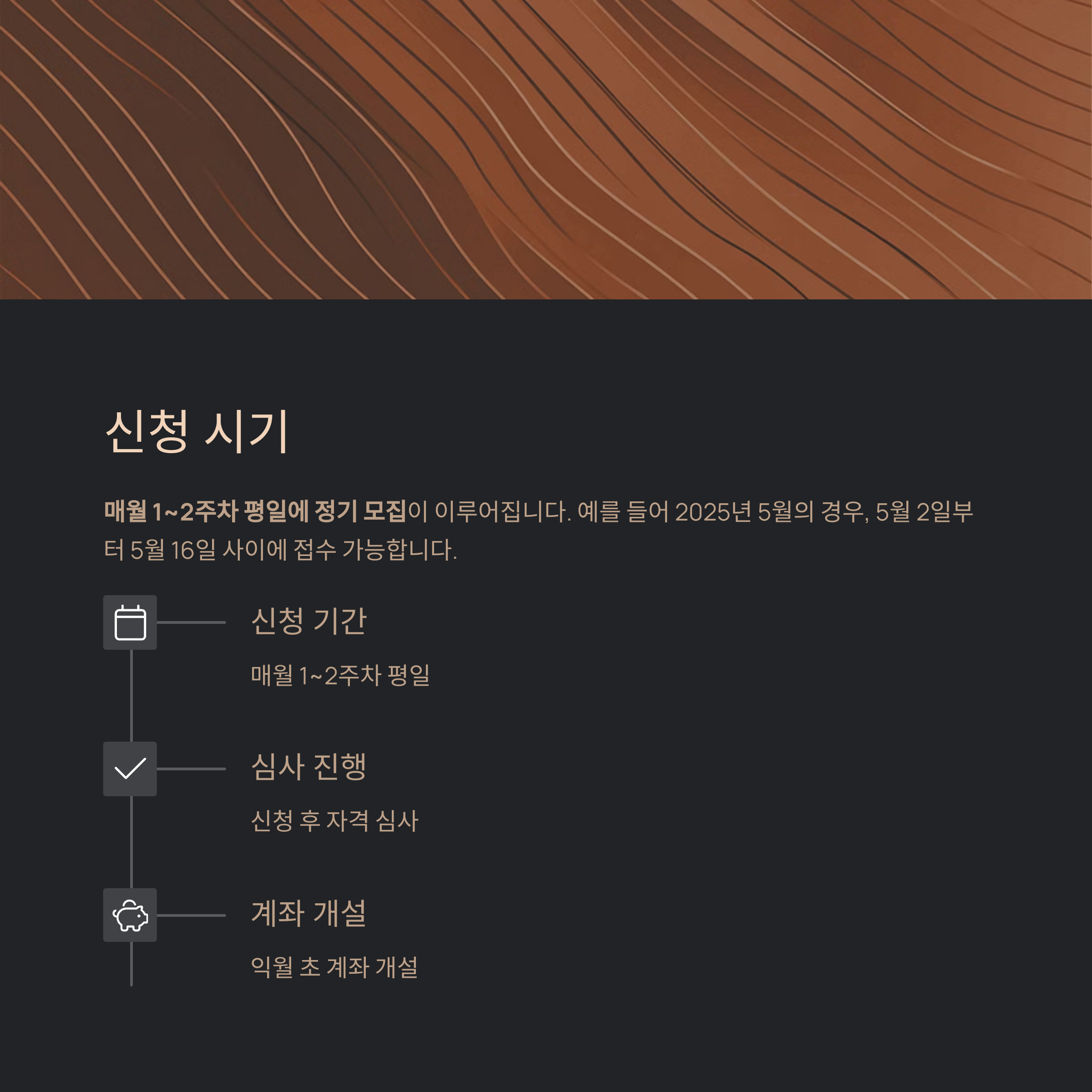 "매달 일정한 기간에 모집되므로 신청 기간을 반드시 확인하세요."