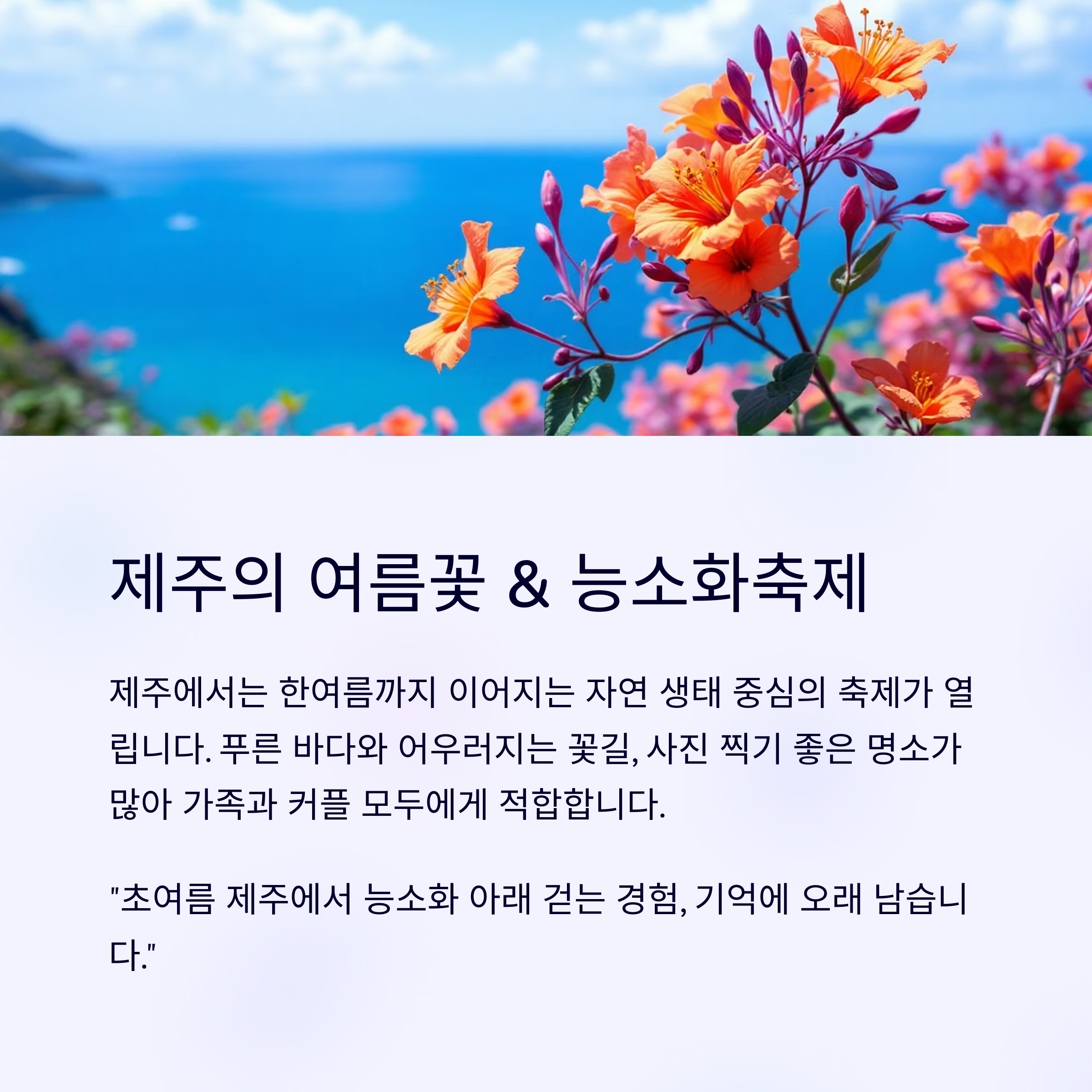 무더위가 시작되기 전, 제주만의 자연을 만끽할 수 있는 최적기입니다.
