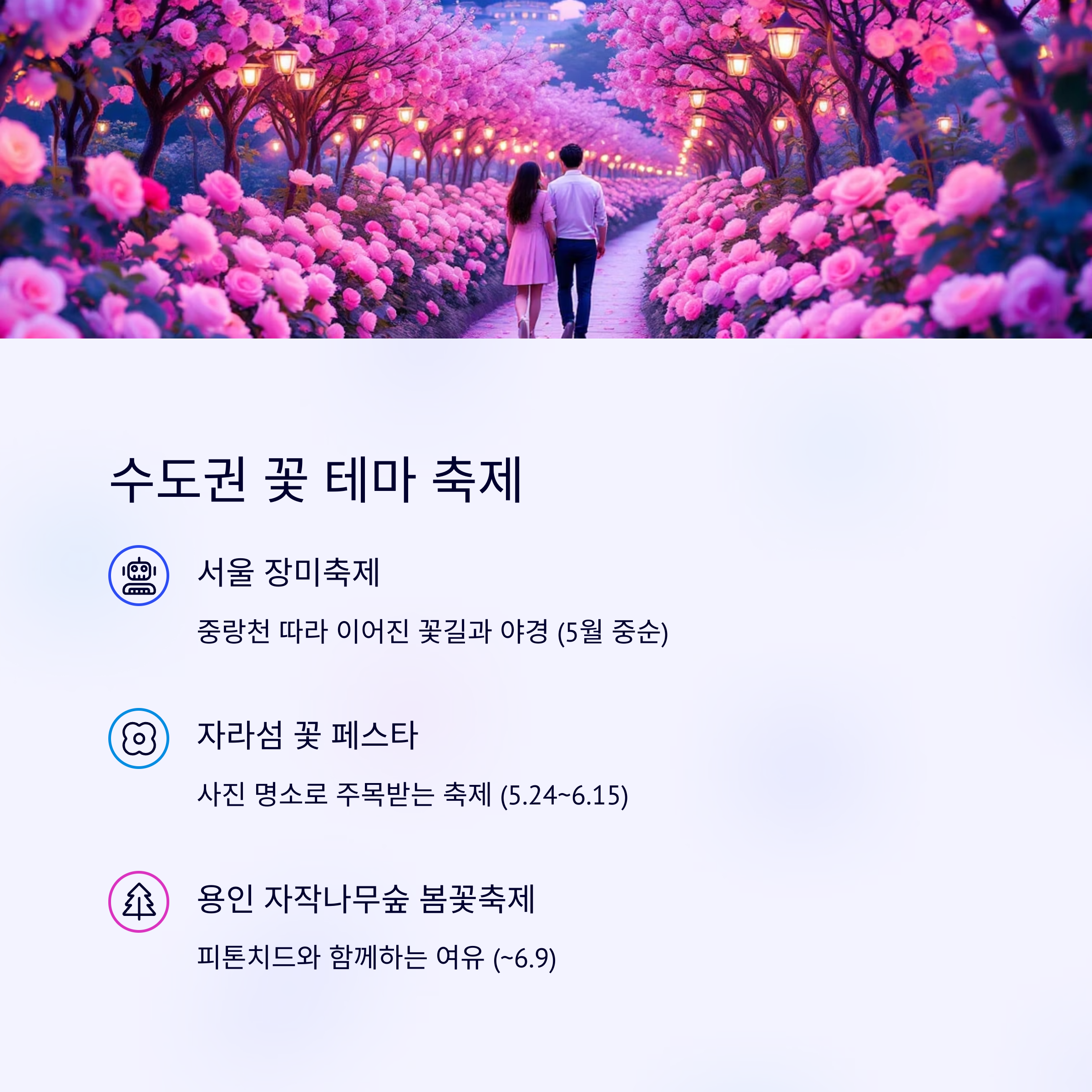 도심 속 꽃길 따라 걷는 감성 축제, 수도권 꽃 테마