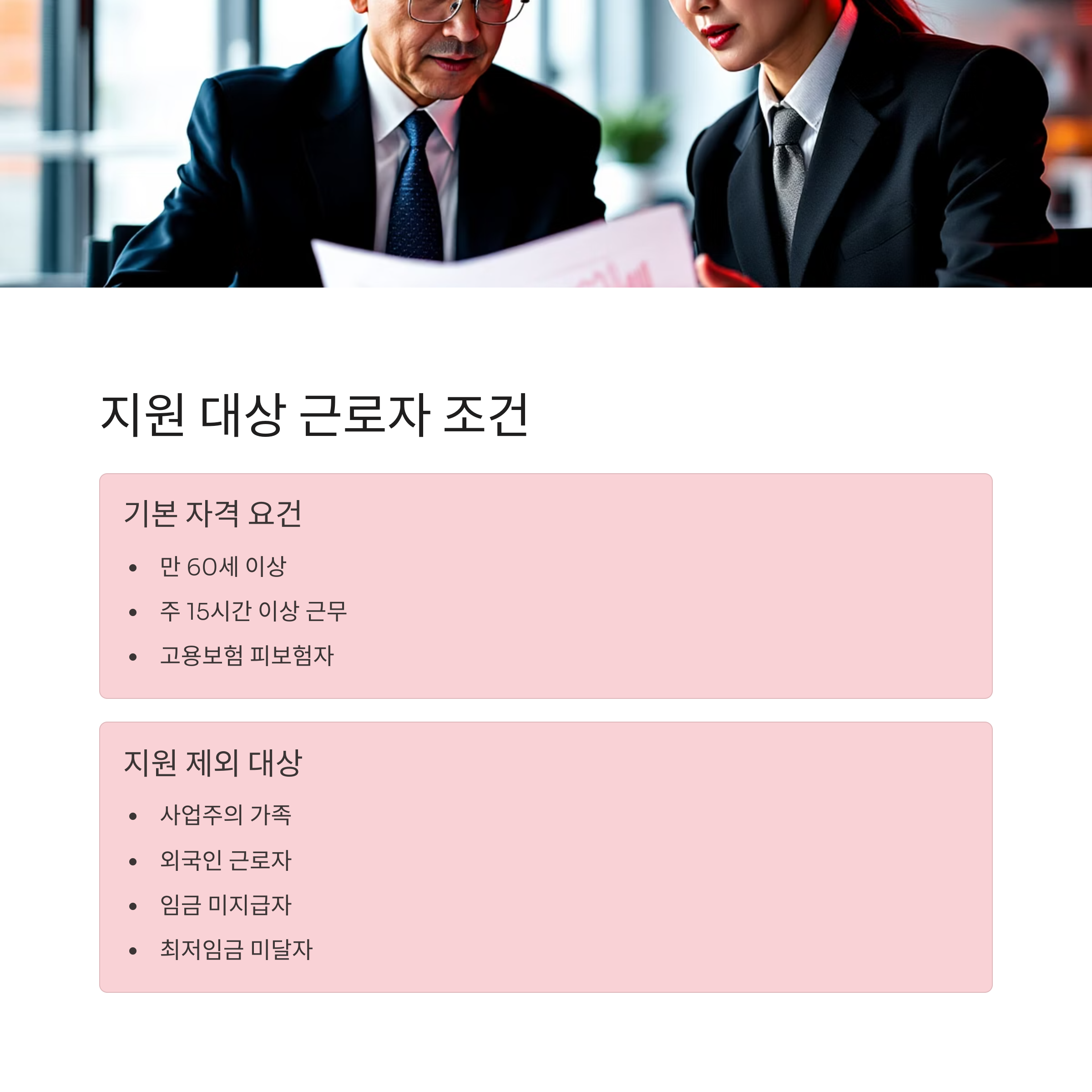 기본 조건은 만 60세 이상 + 고용보험 가입자입니다.