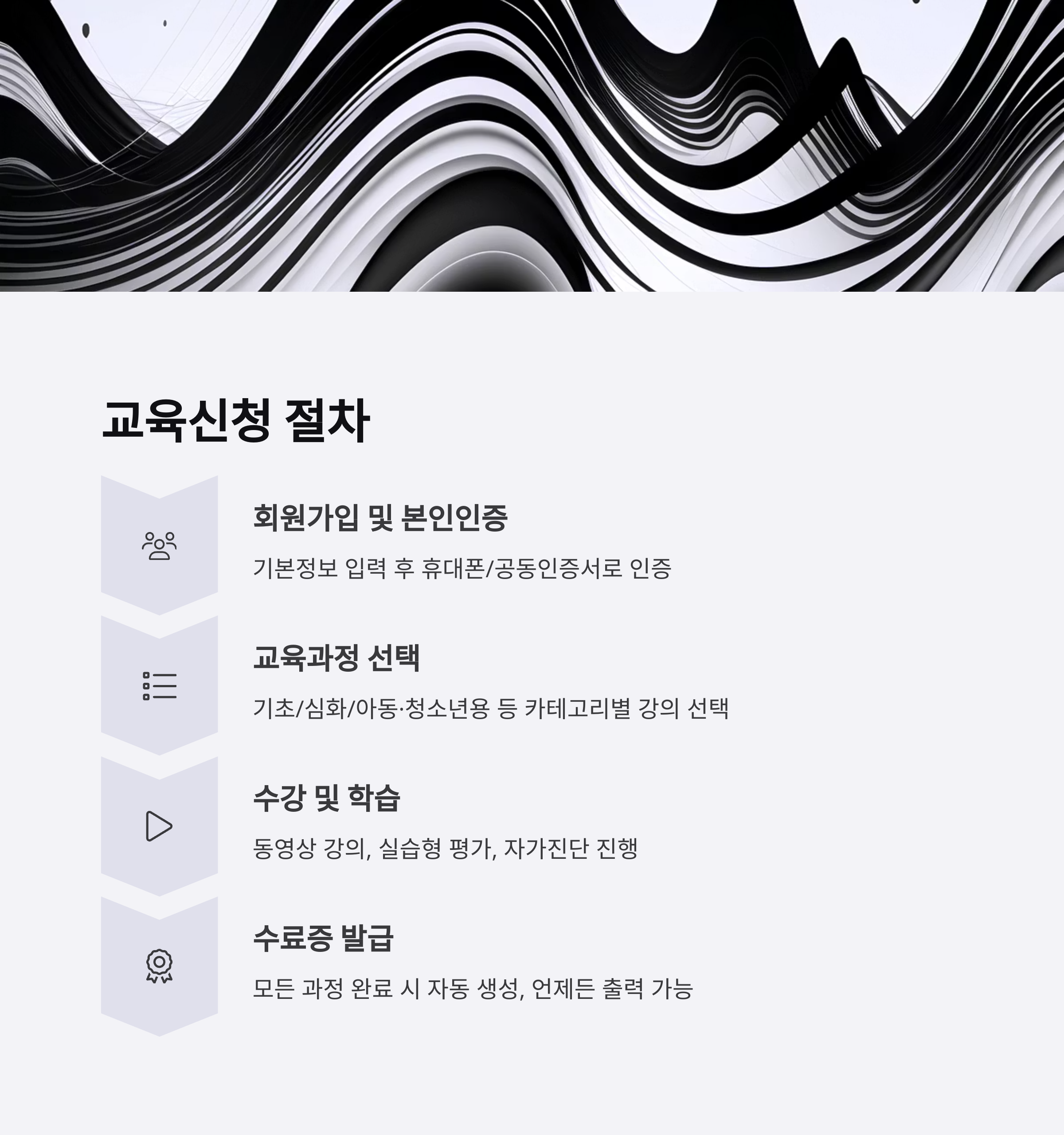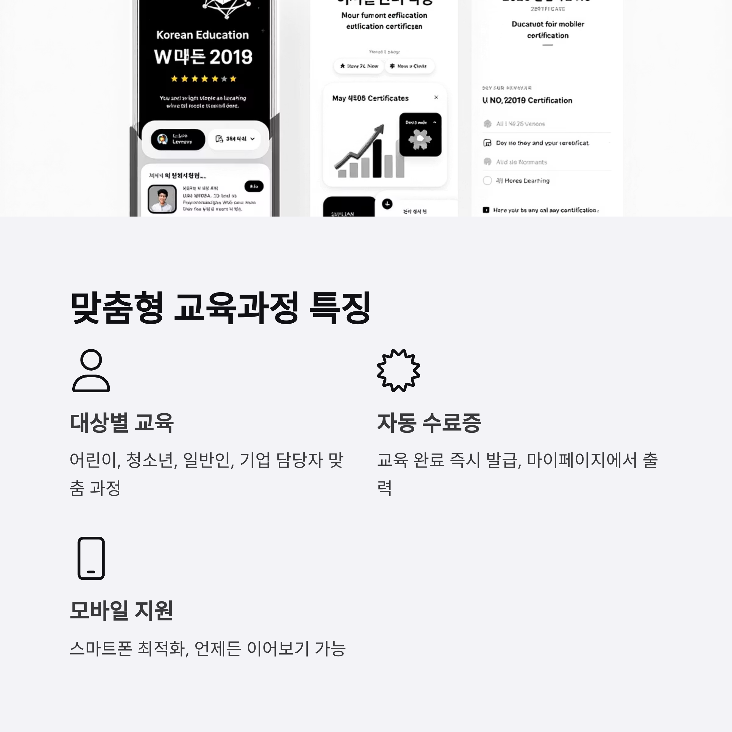 | 수료증 발급 | 교육 완료 즉시 자동 발급, 마이페이지에서 출력 가능 |