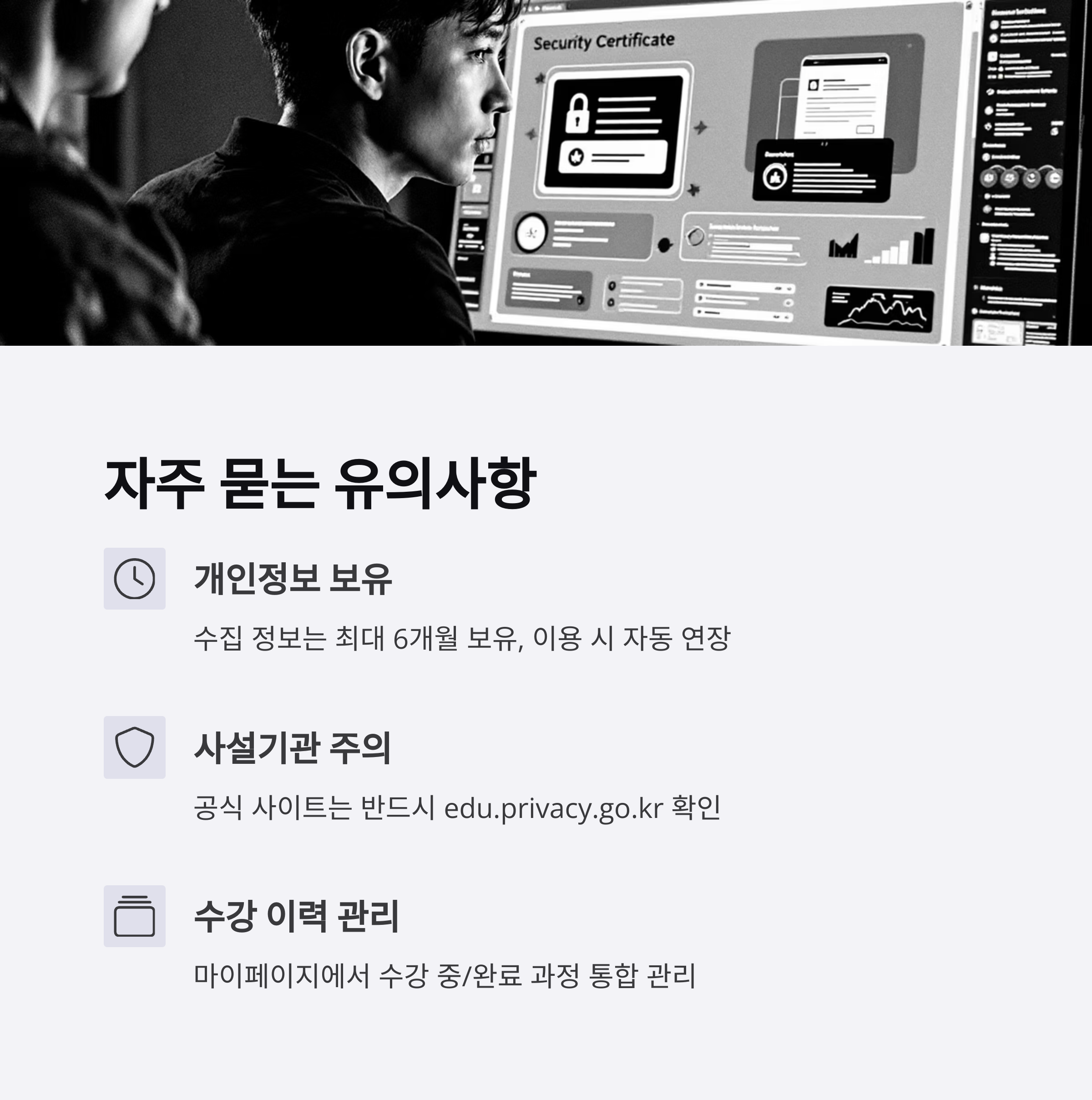 공식 사이트는 반드시 edu.privacy.go.kr 주소를 확인하세요. - 수강 이력 확인: