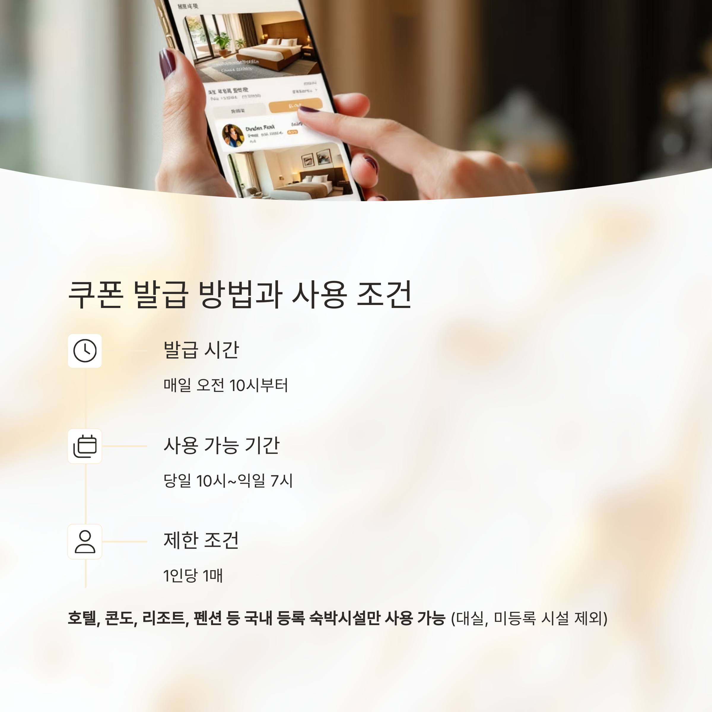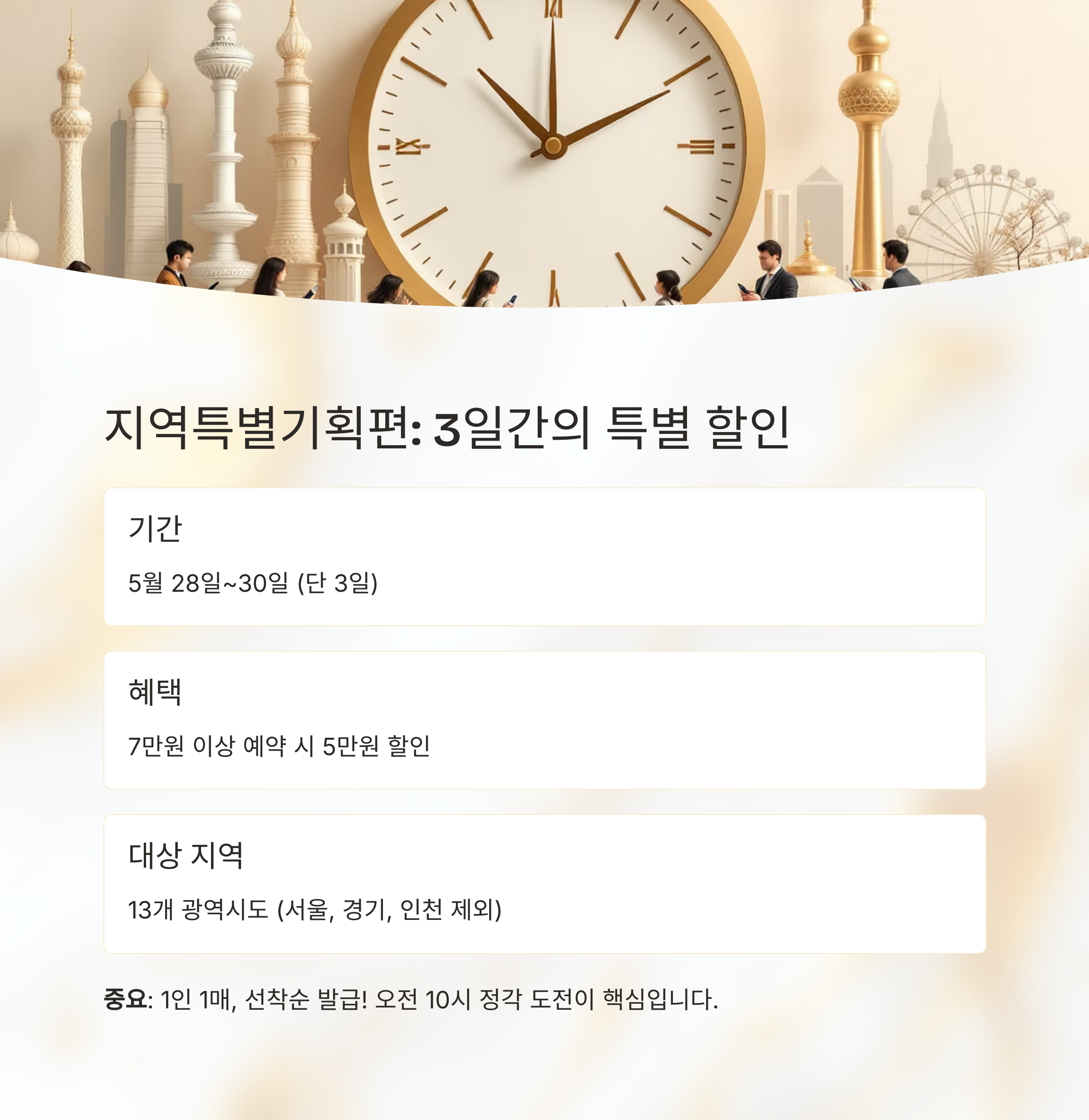 할인권은 매일 오전 10시부터 지정된 OTA 사이트에서 선착순 발급됩니다.