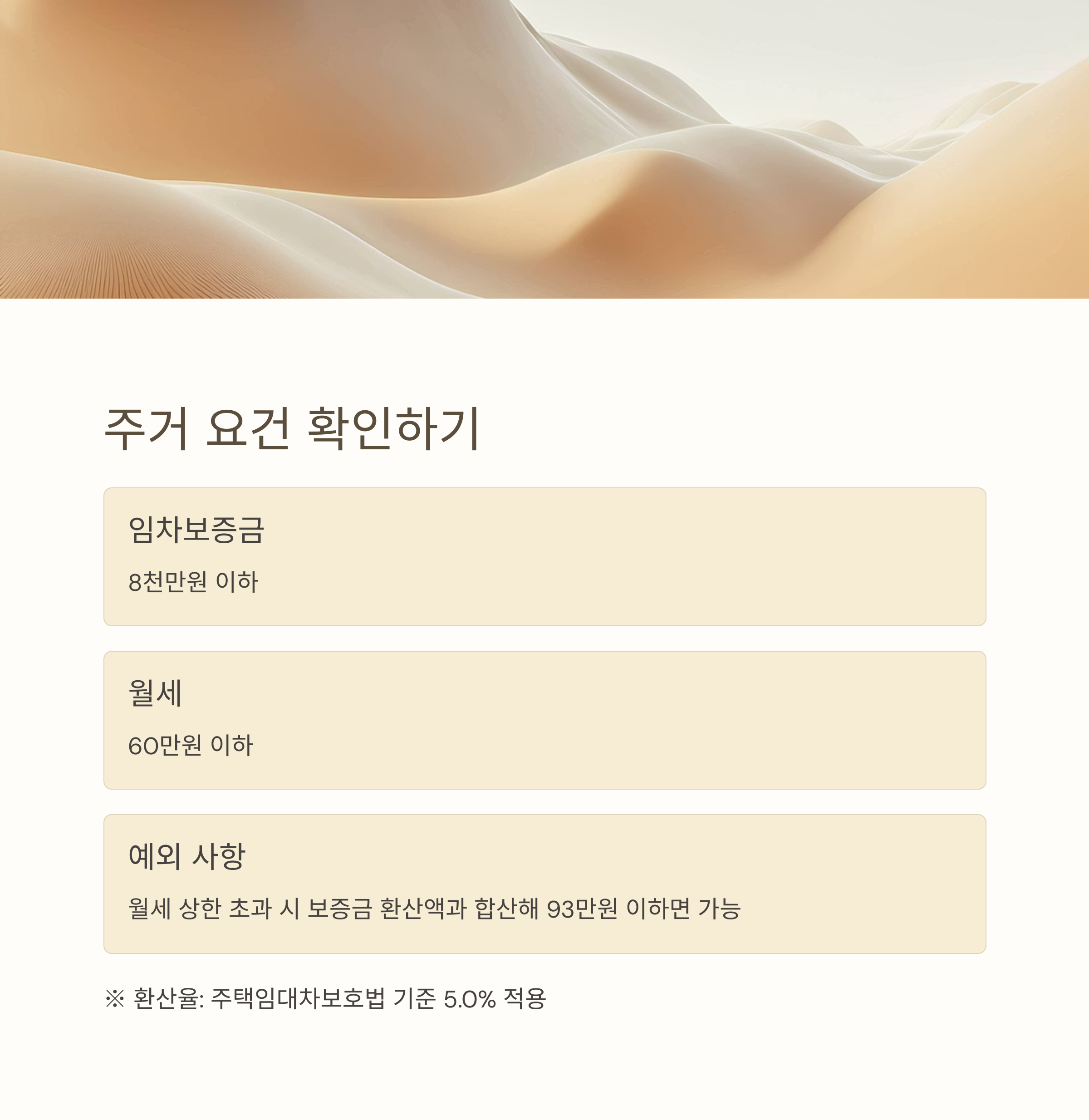| 월세 | 60만 원 이하 (또는 보증금 환산 포함 93만 원 이하) |